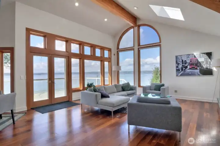 166 feet of low-bank, west-facing waterfront on Henderson Bay with stunning Olympic Mountain views and unforgettable sunsets. Tucked away for privacy, yet just minutes from Gig Harbor amenities, this home offers the perfect blend of peaceful waterfront living and everyday convenience. Step inside to a dramatic great room with soaring ceilings, exposed beams, Brazilian hardwood floors, and walls of windows capturing the beauty of the bay. The spacious deck invites you to relax, entertain, and enjoy summer evenings on the water. The main-level primary suite offers a private retreat with a large walk-in closet, spa-like bath, and its own deck—perfect for morning coffee or unwinding in the hot tub. The kitchen features marble countertops, an eating bar, and a generous walk-in pantry. Upstairs includes additional bedrooms, a full bath, a light-filled bonus room, and a private guest suite with kitchenette—ideal for visitors or multi-generational living. A rare opportunity to enjoy the best of the Pacific Northwest waterfront lifestyle.