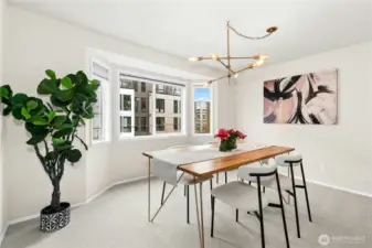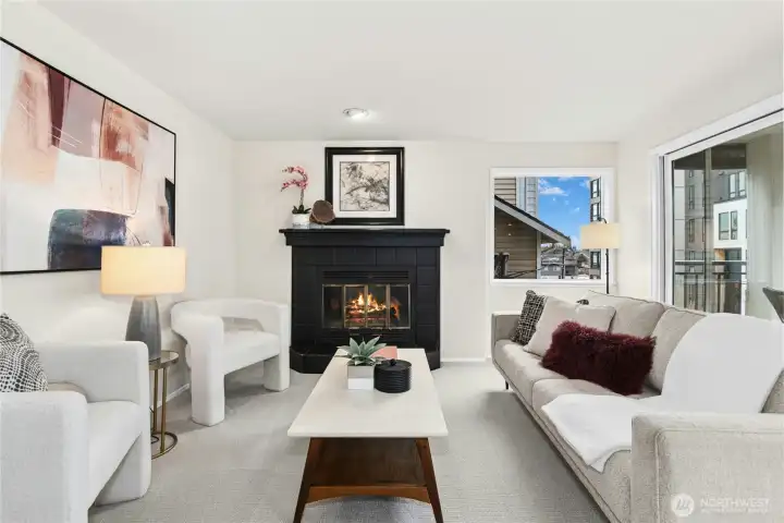 Welcome to Phinney Ridge Condos! This light-filled end-unit offers 2 bedrooms, 1.75 baths, and 1,048 sqft of thoughtfully refreshed living space, featuring new carpet, fresh interior paint, and updated bathroom flooring. The recently updated kitchen showcases quartz countertops, stainless steel appliances, and newer hardware, flowing seamlessly into the oversized dining area and inviting living room with a cozy fireplace. The spacious primary suite includes an en-suite bath and generous storage. Step outside to the covered balcony, perfect for year-round enjoyment, along with the convenience of secured, covered parking. A well-managed HOA covers water, sewer, and garbage, with major building improvements already completed, including siding, roof, windows, and elevator. Ideally located, you’ll enjoy the best of Greenwood living just one block from Trader Joe’s, neighborhood parks, local shops, and dining, with easy access to transit, Green Lake, and downtown Seattle. Pre-inspected for peace of mind.