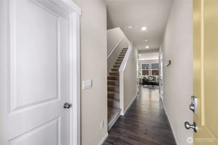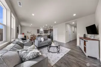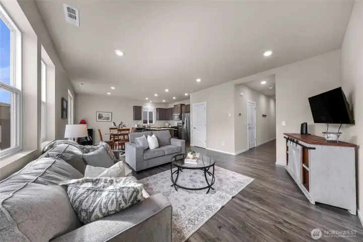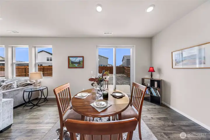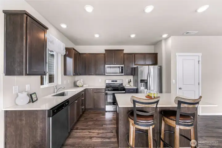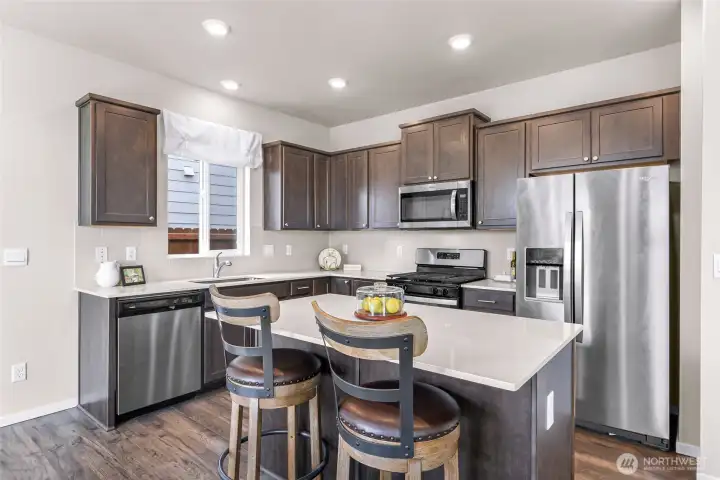 Welcome home to Black Horse by DR Horton! This immaculate, nearly new Sherwood plan offers 4 bedrooms, 2.5 baths, and 1,764 sqft of thoughtfully designed living space. Enjoy 9-ft ceilings and durable luxury vinyl plank flooring throughout the main level. The striking kitchen shines with quartz countertops, gas range, full-height tile backsplash, and a spacious pantry perfect for everyday living and entertaining. Upgraded bathrooms feature elegant marble countertops, while added comforts include A/C, smart home features, and front yard irrigation. Situated on a desirable 4,374 sqft end lot beside a community trail, providing extra privacy and buffer between neighbors. The backyard boasts a wrap around patio and low-maintenance landscaping offering a blank canvas ready for you to come in and create your vision of a dream oasis.