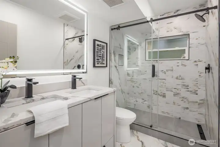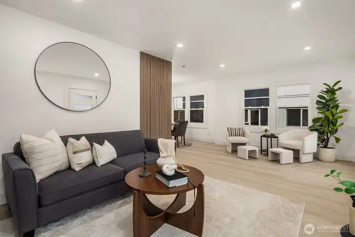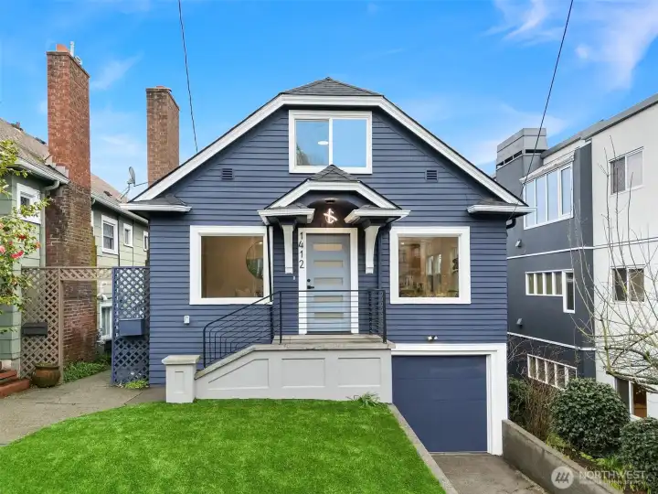 Completely remodeled from top to bottom, this Queen Anne craftsman has been given a total fresh start; and it shows the moment you walk through the door. Every surface has been thoughtfully updated with modern finishes while honoring the bones of its classic architecture. Inside, you'll find an open-concept layout with new laminate flooring, a stunning stone fireplace flanked by wood slat accents as the centerpiece of the living area and a fully renovated kitchen with updated cabinetry and counters. Neutral tones and clean lines run throughout, including two beautifully remodeled bathrooms and fresh interior paint from end to end. The finished daylight basement stands out, offering a bedroom, spacious living room, full bath, and its own separate entrance, making it ideal for guests, rental potential, or flexible day-to-day living arrangements. Step outside to a refreshed exterior; with a manicured turf front yard while out back, you'll find a fully fenced yard with mature plantings and plenty of privacy to enjoy year-round. The Queen Anne location speaks for itself; you're just blocks to Uptown, South Lake Union, downtown, and Fremont, with Seattle Center, Climate Pledge Arena, major tech campuses, acclaimed dining, neighborhood shops, and convenient transit all within easy reach. This is the kind of home that simply doesn't come around often. Modern comfort paired with unbeatable neighborhood access in one of Seattle's most sought-after communities.