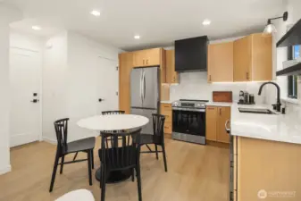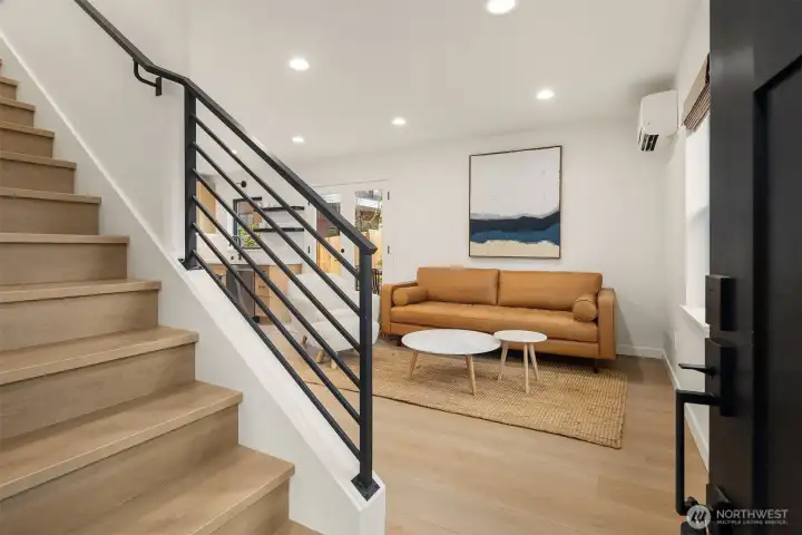 Beautifully crafted, south-facing newer construction in the heart of Magnolia offering the perfect blend of style, efficiency, and privacy. Ideally located just steps to Met Market, bus lines, and a short stroll to Discovery Park—this home truly delivers on both convenience and lifestyle. The sought-after, light-filled floor plan features a thoughtfully designed main level with open-concept that is ideal for everyday living and effortless entertaining. French doors open to a warm, sun-drenched south-facing patio and fully fenced private yard with low-maintenance turf and curated garden spaces. A convenient powder room and direct access to the spacious garage complete this level. Upstairs, cathedral ceilings elevate the space, featuring three bedrooms and two beautifully appointed baths—both with heated floors—plus a bright, well-positioned laundry room. Enjoy year-round comfort with ductless mini-splits in every room, offering both heating and cooling. Additional highlights include a hot water spigot for washing cars or pets and a garage wired for EV charging. No detail has been overlooked in this exceptional Magnolia home.