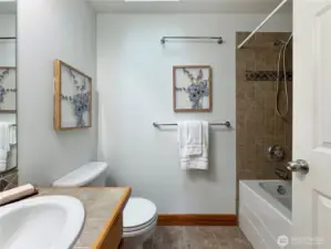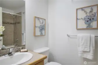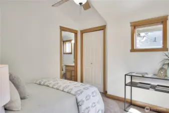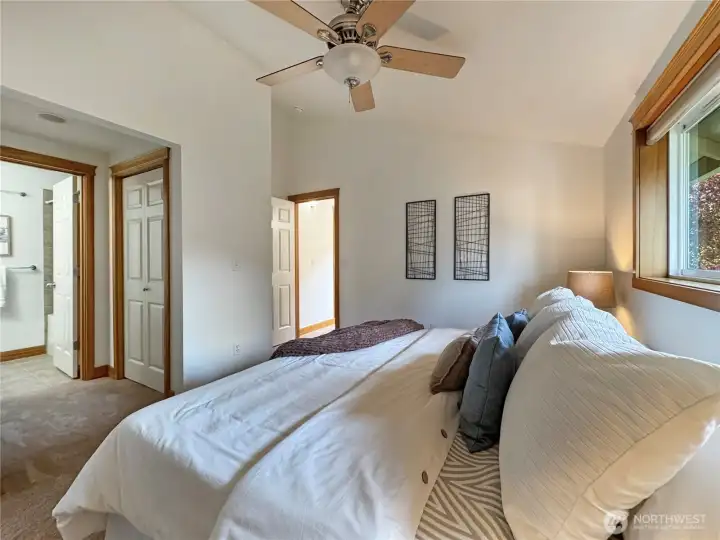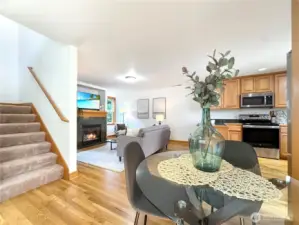 Experience life near the heart of Green Lake - just moments from its vibrant dining scene, recreational activities, and scenic beauty. This 3 br, 2.5 ba townhouse features newly refinished oak hardwood floors, fresh paint throughout, new carpet, and open-concept layout, a cozy fireplace, and fully fenced private backyard. The kitchen is outfitted with granite countertops, a convenient breakfast bar for casual dining with new fridge and oven. Upstairs, you'll find two spacious primary suites, each with its own en suite bath and dramatic vaulted ceilings. Tucked away on a quiet street, yet just blocks from I-5, Hwy 99, and key transit lines, this home offers the perfect balance of comfort and connectivity. No HOA, No Dues.