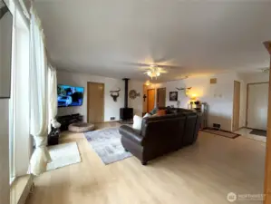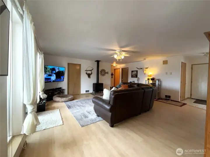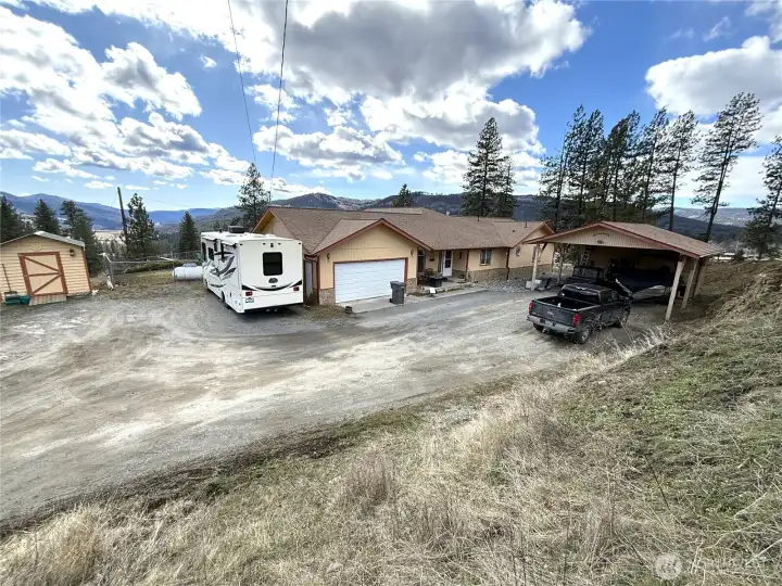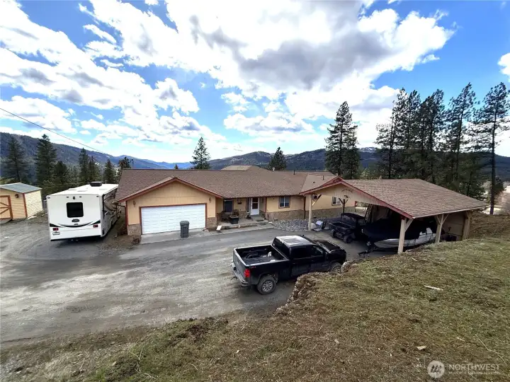 Enjoy breathtaking views overlooking the San Poil River Valley from this beautifully maintained, quality-built frame home. Designed for easy living, the spacious single-level floor plan features a bright, inviting kitchen with abundant cabinet and counter space. The living room and bedrooms are generously sized, and a versatile bonus room off the primary suite is perfect for a home office, workout space, or quiet retreat. The primary bathroom has been recently remodeled into a full bath, and new flooring adds a fresh, updated feel throughout the home. A formal dining room showcases a large picture window and elegant ceiling details, creating a warm and welcoming space for gatherings. Step outside to the covered deck—ideal for entertaining or simply relaxing while taking in the stunning views. The attached garage and detached carport provide covered parking for up to four vehicles. For those needing extra space, the property also includes a large barn with two stalls and a fenced pasture, making it well-suited for horses. All of this offers a sense of privacy and elbow room while still being conveniently located within city limits—a truly exceptional property.