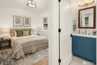 New construction by Granger and Company, this charming Kirkland cottage offers thoughtful design in a peaceful neighborhood setting. The bright, open main floor features a cozy fireplace and an inviting layout ideal for everyday living and entertaining. A custom kitchen provides ample space for a dining table and chairs, while the conveniently located powder room sits just off the backyard. Step outside to a rare, fully fenced yard—perfect for relaxing with a pair of chaise lounges or giving your pup room to roam. Upstairs, you’ll find two bedrooms and two bathrooms, including a serene primary suite. The primary bath showcases a romantic arched shower with beautiful tilework, and a private deck off the suite offers a pleasant retreat for morning coffee or evening unwinding. The home also features an easy, flat driveway with two generous parking spaces—an added convenience that’s hard to find. Situated in Kirkland’s desirable Highlands neighborhood, this home is surrounded by peaceful, well-kept streets, lush green spaces, and excellent schools. Enjoy quick access to the waterfront, dining, and shopping in Downtown Kirkland. A wonderful opportunity to own a beautifully crafted new home in a sought-after location.