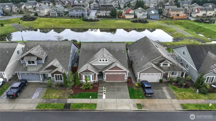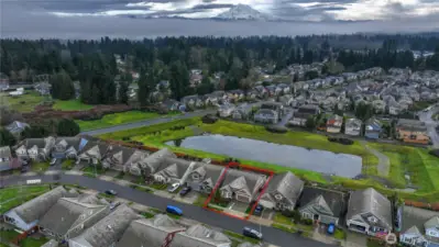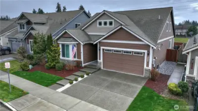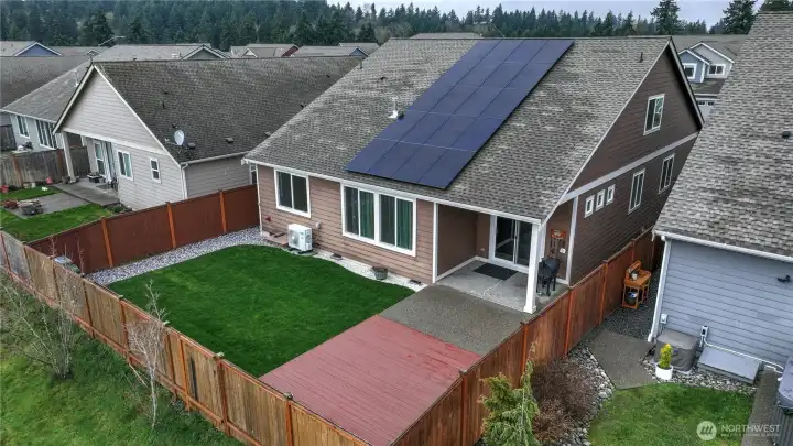 WELCOME HOME! This exceptionally well-maintained 2,457 sqft home features 3 bedrooms, 3 baths, plus an office and large den offering potential for a 4th bedroom. Vaulted ceilings and light-filled living spaces create an open, inviting feel throughout, along with ample storage. Inside you’ll find new paint, trim, engineered hardwood flooring, a new dryer, and all new kitchen appliances (all appliances to stay). Additional features include soft-close cabinetry, a tankless water heater, and a heat pump with A/C for year-round comfort and efficiency. A standout feature is the brand new $40K solar system that will be FULLY PAID OFF by the seller at closing, allowing the next owner to enjoy significantly reduced electricity costs with no solar loan or lease to assume. With Puget Sound Energy increasing residential electricity rates by 12% in January 2026, owning a home with fully paid-off solar provides meaningful long-term savings and added value. Step outside to a fully fenced and beautifully landscaped backyard featuring raised garden beds, a covered patio, and a deck, perfect for relaxing or entertaining. All set against beautiful mountain views and backing to a scenic retention pond often enjoyed by the neighborhood, the property offers rare privacy with private gated access from the backyard and no homes behind you. Move-in ready and thoughtfully updated—this home truly checks all the boxes.