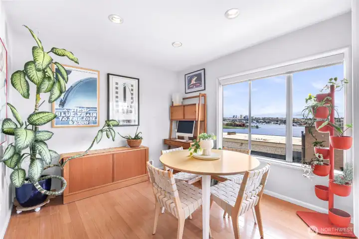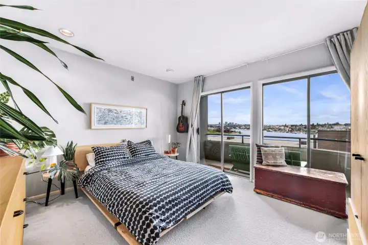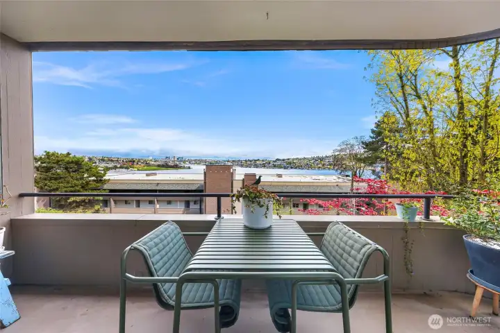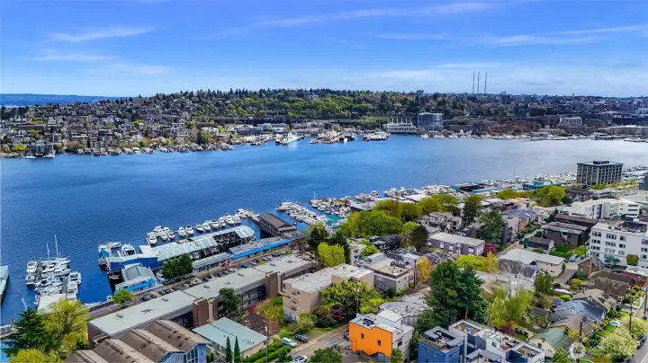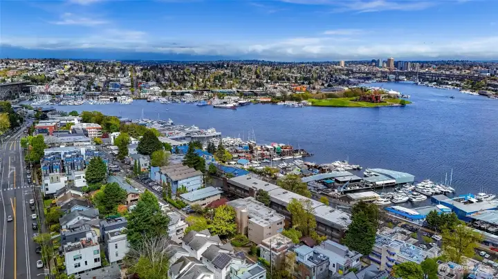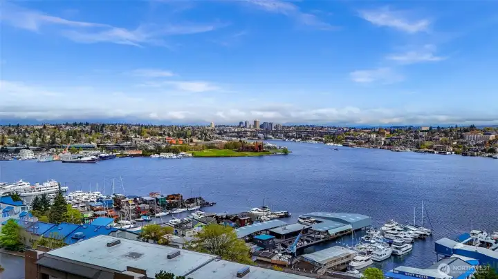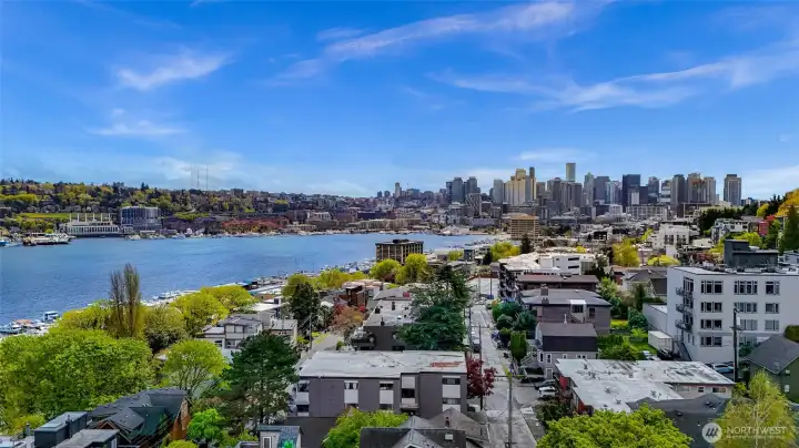 Perched above Lake Union on a quiet East Queen Anne street, this light-filled residence at 2134 Waverly Place N delivers front-row views of Seattle’s most iconic scenery—from shimmering water and sailboats to the skyline beyond. Watch the seasons change over Lake Union and enjoy postcard-worthy outlooks toward Gas Works Park, with dazzling sunrises and holiday fireworks right from home. Inside, an open-concept layout is designed for both everyday living and entertaining. The sunken living room centers around a cozy fireplace, while large windows frame the view and flood the space with natural light. The updated galley kitchen features granite countertops and stainless appliances. Two expansive covered patios extend your living space outdoors—perfect for morning coffee or evening gatherings. The primary suite offers a peaceful retreat with water views, private outdoor access, and a refreshed spa like bath. Additional highlights include a wet bar, secured parking, storage, pet-friendly living, and no rental cap—an increasingly rare find. Ideally located just minutes to South Lake Union, Fremont, and downtown, you’re surrounded by some of the city’s best dining, tech hubs, trails, and waterfront parks. Sophisticated, scenic, and effortlessly connected—this is quintessential Seattle living.