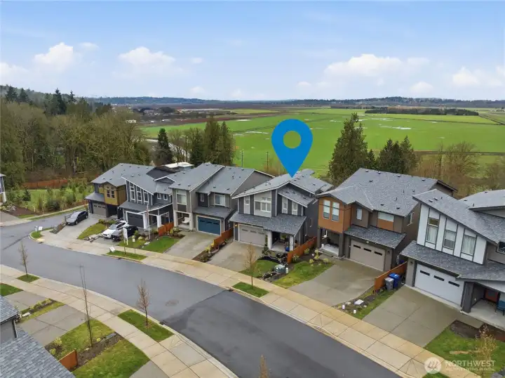 Perched high above the sweeping Snohomish River Valley and tucked behind Glacier Peak High, this stunning Brasswood home blends modern luxury with breathtaking natural beauty. Boasting over 3,100 sq ft of thoughtfully designed living space, this newly built residence is loaded with tech-forward and designer upgrades throughout. Enjoy panoramic valley and mountain views from the open-concept great room, where engineered hardwoods, expansive windows, and a cozy fireplace create an inviting atmosphere perfect for entertaining. Game-Day Ready Layout. The gourmet kitchen is a true showpiece, featuring timeless white shaker cabinetry, quartz countertops, under-cabinet lighting, stylish backsplash, walk-in pantry, and brand-new 36” Thermador range and dishwasher. The spacious dining area flows seamlessly to a large deck—perfect for entertaining or relaxing while taking in the serene surroundings, grill ready with a gas BBQ stub. A practical mudroom, covered front porch, and powder room add everyday convenience. Upstairs, the luxurious primary suite offers a spa-like retreat with tranquil privacy. With 4 bedrooms and 3.5 baths, including a daylight basement for added versatility, this home adapts beautifully to your lifestyle. Enjoy A/C this summer, Loaded with Smart Home technology, custom window treatments, and stunning territorial views. Top rated local schools including Glacier Peak High. Pre-Inspected and ready to go.