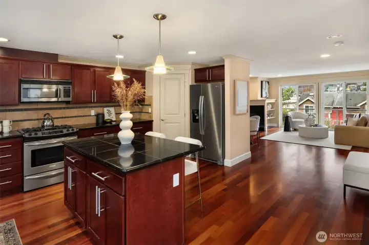 A true Magnolia gem — this beautifully refreshed, move-in ready 3 bed, 3.5 bath townhome offers 1,760 sq ft of open living with stunning views and brand new carpet throughout! Gorgeous hardwoods, a cozy gas fireplace, and a spacious kitchen with cherry cabinets and a generous island make this home ideal for hosting. Both upstairs bedrooms feature their own ensuites, plus top-floor laundry for peak convenience. The lower-level bedroom also includes its own private bath, perfect for guests or a home office. Enjoy two private decks — one off the primary suite and one off the main living area. Attached garage for everyday ease. Fantastic location with easy access to downtown, SLU, Ballard, and Fremont. Walk to parks, dining, and shopping — this is Seattle living done right!