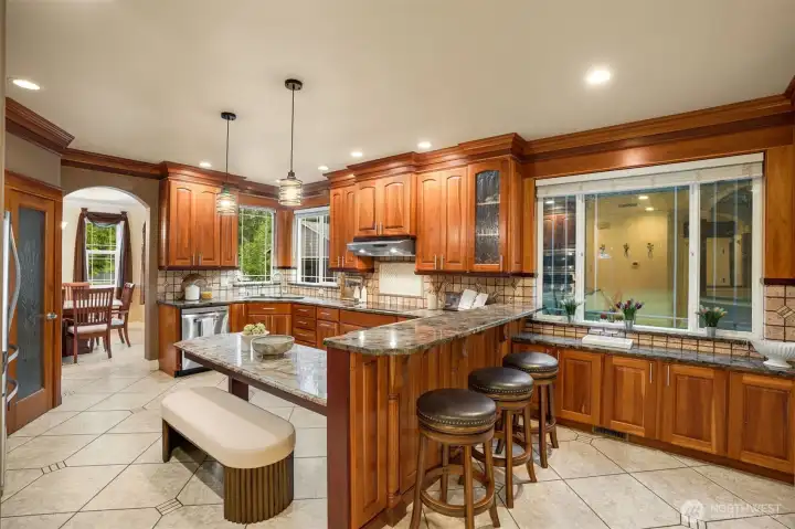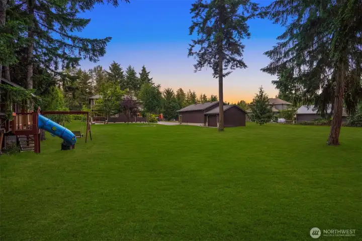 Discover this stunning custom built home on a sprawling 1.27-acre lot.Greeting you with expansive grounds, soaring ceilings, and heated tile floors throughout. Spanning across nearly 3,000sqft featuring 4 bedrooms, an office, and two inviting living areas. Dreamy chefs kitchen with custom cabinetry, spacious granite counter tops, and stainless steal appliances. Boasting a large 24x36 shop and a generously sized driveway, this property offers abundant parking, RV space, and plenty of storage options. Grounds are beautifully enhanced with fruit trees including plum, pear, and walnut trees. Enjoy the added luxury of being on a private greenbelt with a beautiful forest view.Situated just minutes from the upcoming Bethel High School. Peaceful, private, and beautifully maintained, this home combines comfort, style, and functionality in a serene setting.Don't miss this rare opportunity!