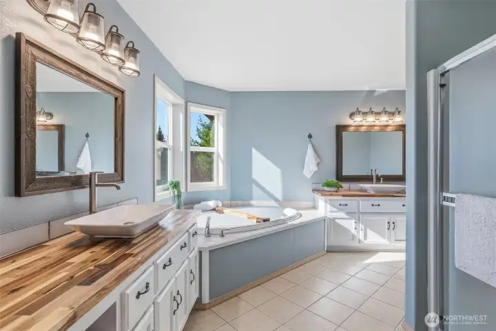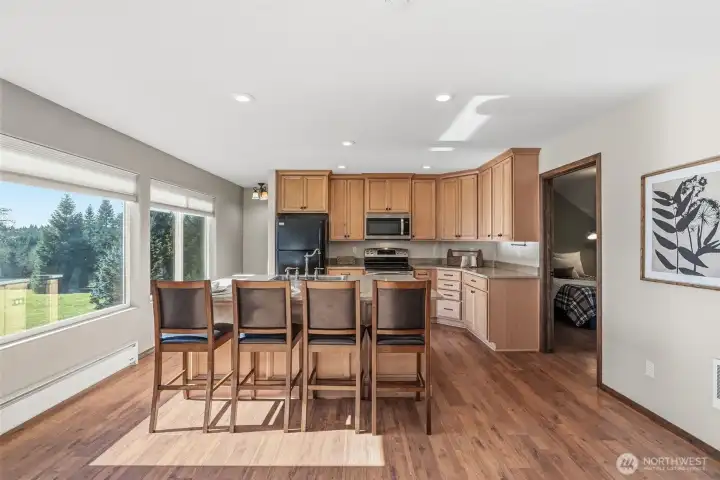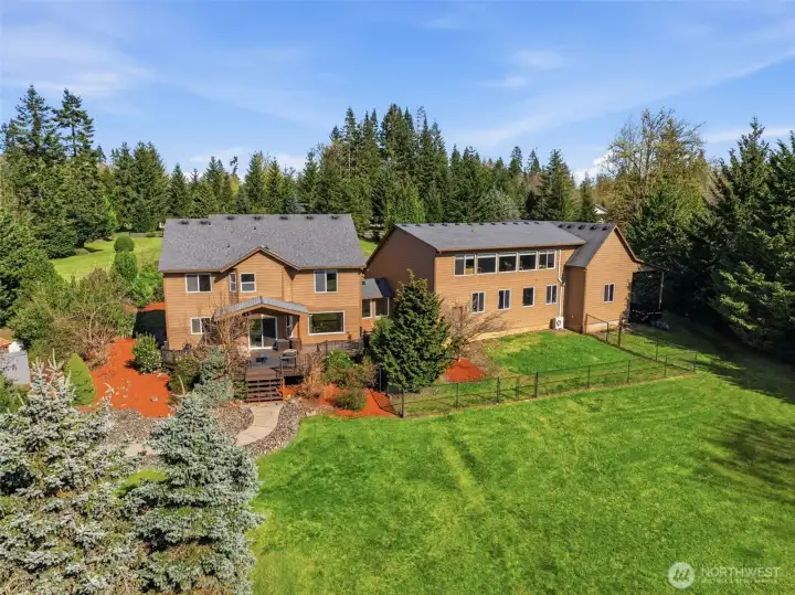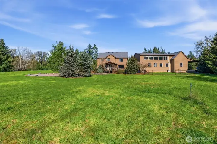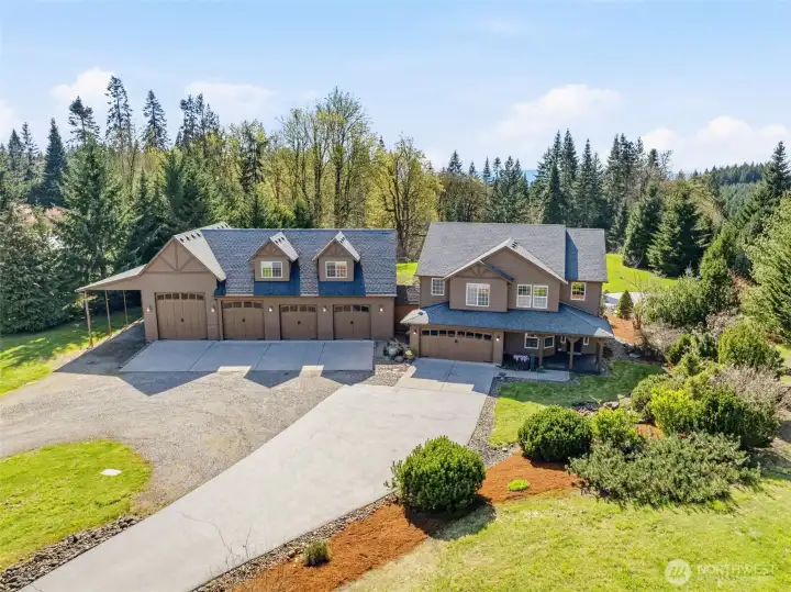 Located in the heart of La Center sits a premier community where you’ll find this 5-acre home w/perfect balances of NW Contemporary design and the functional freedom of a country estate! Whether you’re looking for a sophisticated multi-generational setup or a professional-grade hobbyist space, this property delivers on every level. The 2,468 square-foot primary residence is a quality-built home featuring two-story entry, an abundance of viewing windows showcasing the fabulous greenery surrounding the property & inviting the outdoors in! The efficient main kitchen has gorgeous granite counters & Italian-imported backsplash, high grade cabinetry includes pull-out, soft close drawers & doors, kidney-lazy-susans, eating bar, pantry & tile floors. Lovely porcelain stove adds ambience to the large great room that walks out to the spacious covered deck. From there, find your way out to a 30’ stamped concrete firepit area to unwind & take in those beautiful NW evening skies. The SHOP will astound – 12’ door, 10’ door, 9' door, storage loft & a wine room; stairs w/accessible lift lead to the upper level where privacy meets proximity in the 1200-square-foot guest suite complete with its own high-end amenities; ideal space for long-term guests offering the same thoughtful design as the main residence, ensuring comfort without compromise -full kitchen, ¾ bath w/heated floor & laundry w/great room, 650sf of storage & amazing views! Bubbler rocks, sprinkler system, circle drive & more!