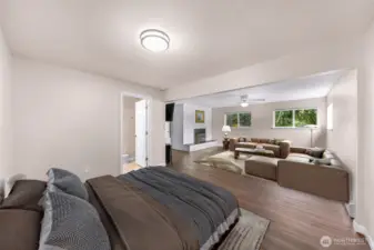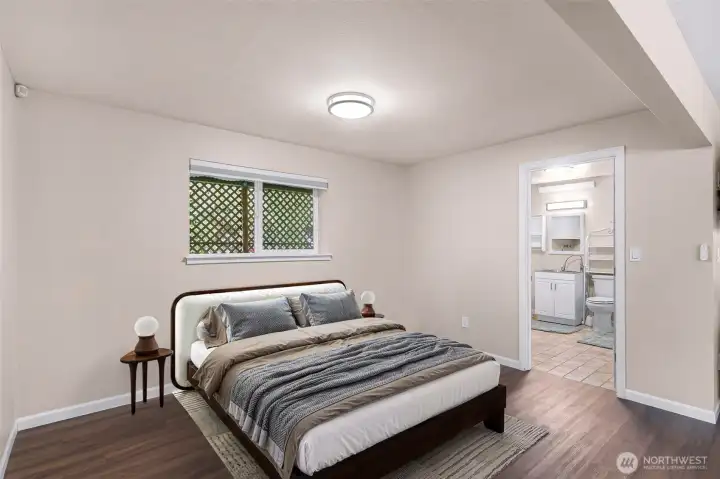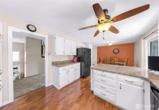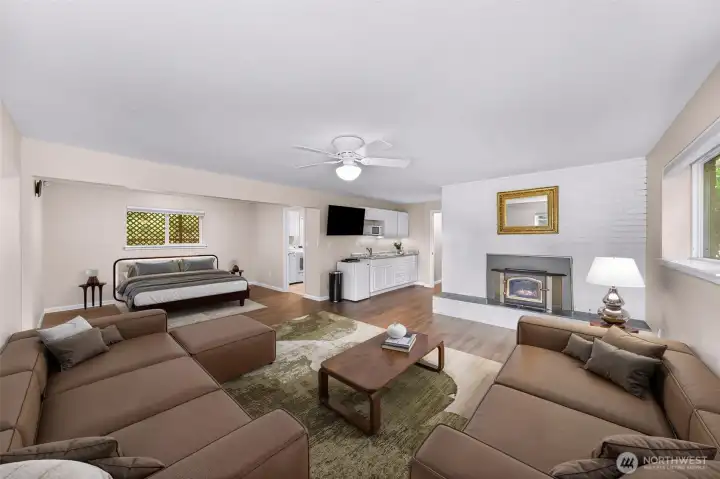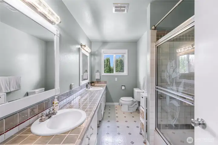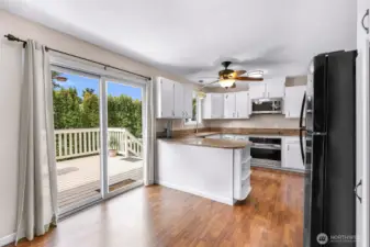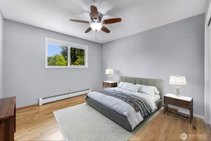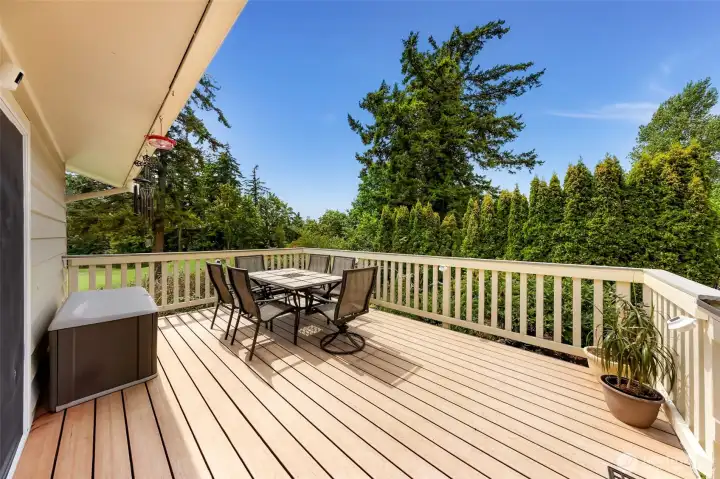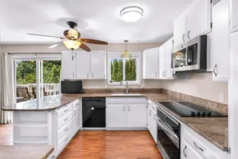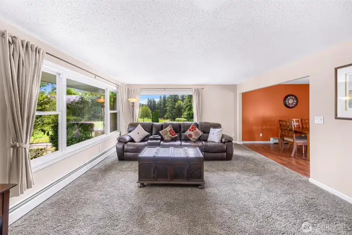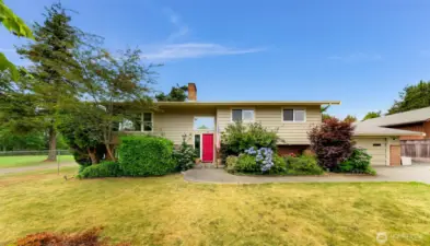 Enjoy front-row living along the 2nd green of the Bellingham Country Club in this thoughtfully cared-for home offering space, flexibility, and privacy. The upper level includes 3 bedrooms and 2 baths with timeless finishes like oak floors, granite countertops, generous cabinetry, and a wood-burning fireplace. Backing directly to the course with no rear neighbors, the home captures open, unobstructed views and a tranquil, park-like setting. The lower level expands the living space with a private entrance, open-concept layout, ¾ bath, laundry, kitchenette, and durable vinyl flooring—well-suited for guests, extended living, or income potential. Radiant heat provides consistent comfort. Outdoor living shines with a large deck overlooking the golf course and private backyard, complemented by beautifully landscaped and thoughtfully designed grounds. A spacious 2-car garage includes a separate workshop or hobby room. Generator backup adds year-round reliability. Ideally located with easy I-5 access, close to shopping and restaurants, and just minutes to downtown Bellingham.