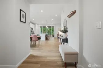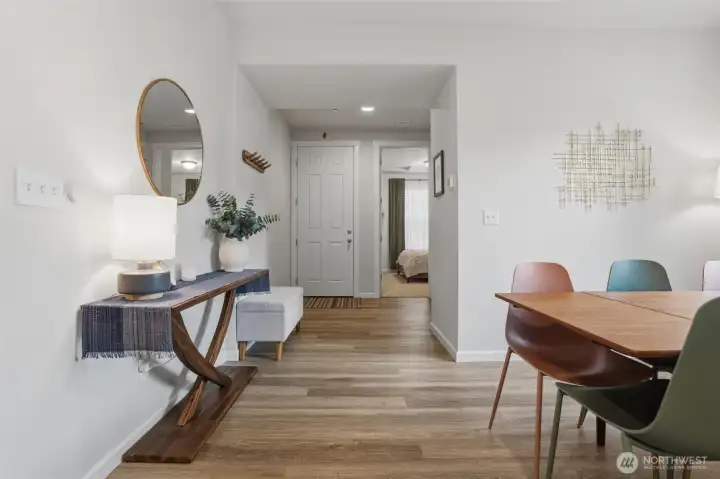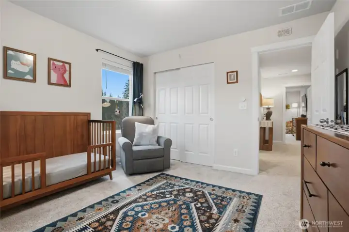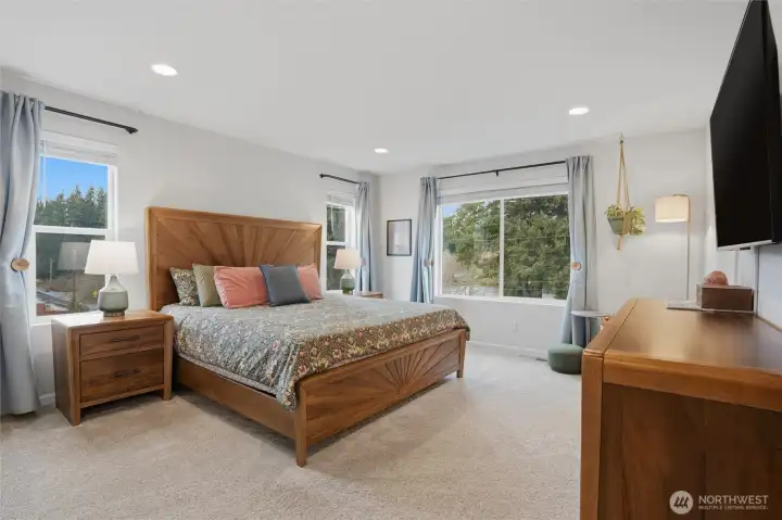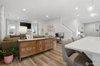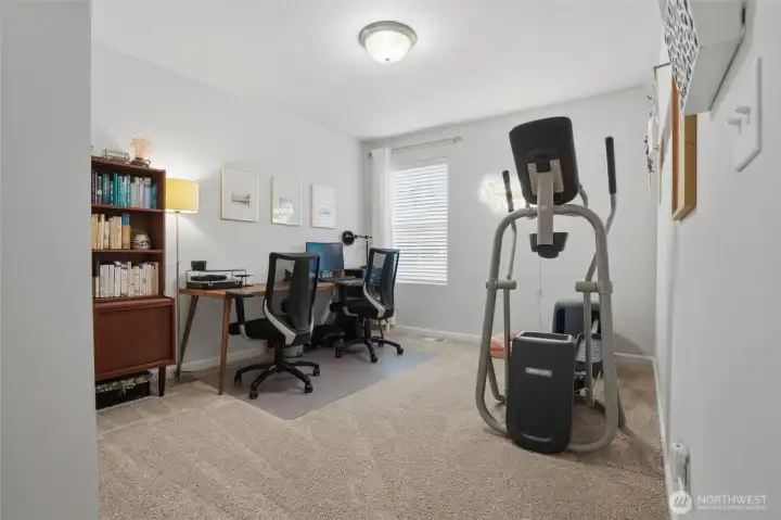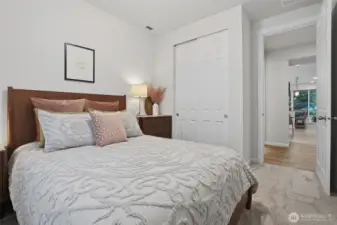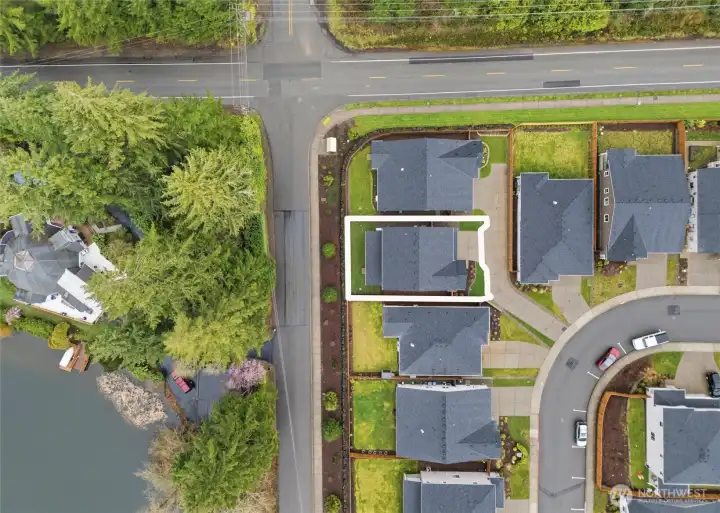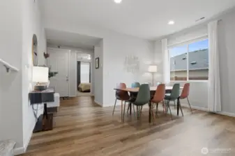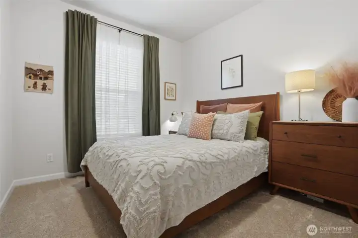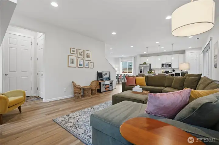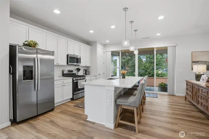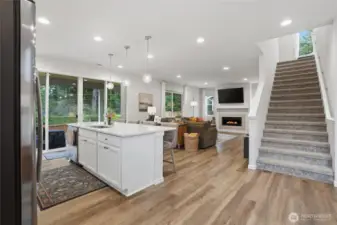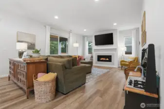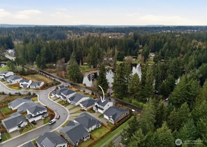 From the moment you step in from the covered front porch, this thoughtfully designed newer home invites you to settle in and stay a while. At its heart is a generous kitchen with a large center island made for Saturday morning pancakes and impromptu homework sessions. Two oversized sliders draw your eyes and attention out to the backyard and you'll find views of the lake next door. The kitchen flows seamlessly into the dining room and great room where a cozy fireplace anchors every gathering. The flexible layout truly sets this home apart; a main-floor bedroom and full bath make an ideal guest suite, in-law space, or quiet home office, while upstairs the open loft gives a place to play, create, or spread out. Two additional bedrooms and a shared bath with double sinks mean busy mornings run a little smoother. When the day is done, retreat to the spacious primary suite. A calm, private escape with a roomy walk-in closet that you could fit a bed in and a double-sink bath designed with busy lives in mind. Upstairs laundry keeps the daily rhythm simple, and the extended covered patio out back means outdoor living isn't just for sunny days. The primary has a view of the lake next door. Top it off with a 2-car garage that actually fits two cars and a layout that truly works for the way you live. If you're looking for low maintenance living and the comfort of a new home, this is the one you've been waiting for.