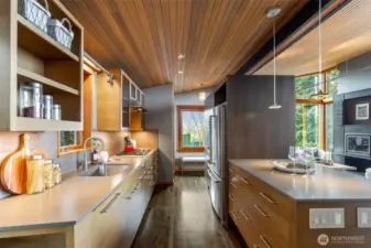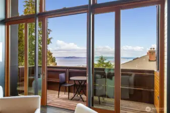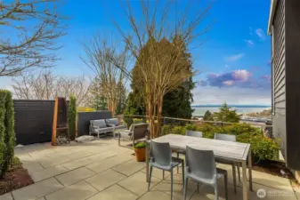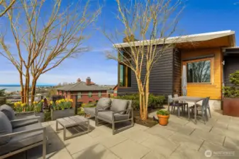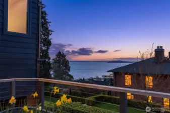 An architect-designed, custom-built home w sweeping views was detailed by a team of exceptional craftsmen between 2012 and 2014. A gem on Queen Anne providing privacy and lovely views with outstanding quality finishes. 14-foot-tall South and West windows afford sweeping views of the Sound and mountains as well as winter views of Elliott Bay and W Seattle. The house was designed for maximum natural light & views without sacrificing privacy. Most rooms have views and direct access to outdoor spaces. The front terrace is easily reached from the kitchen as are the west balcony and the back kitchen garden. Living/dining room space has a built-in fireplace with blackened steel surround and black granite hearth. Ceilings are all clear cedar. Interior doors are all vertical grain fir. Semi-open kitchen w stone counters & walk-in pantry. Lovely powder room with lighted mirror and honed black basalt sink.Primary bedroom boasts stunning views of the Olympics and Elliott Bay. The full bath with tiled shower, electric towel warmer and bidet and cast iron, antique tub. Lower level has Two bedrooms/office spaces with views and sliding glass doors for ventilation and access to the outside. One is wired for TV and stereo systems. Bath with Finlandia sauna and tiled shower. Laundry room with stainless utility sink. Wine cellar with Wine Guardian cooling system and racks. Access to the garage, storage room and alley from this level. Extra deep one car garage with space for work bench.