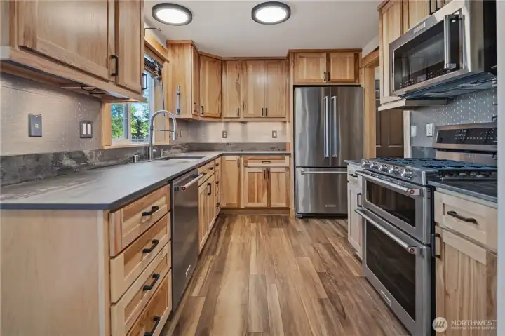 Tucked into the sought-after Mayfield Lake community and just minutes from Mayfield Lake Marina, this fully remodeled home delivers the kind of lifestyle buyers are searching for: peaceful surroundings, quality upgrades, and effortless indoor-outdoor living in one of Lewis County’s favorite recreational destinations.Inside, the home has been thoughtfully updated with a complete interior remodel (2018) and designed for both everyday comfort and weekend retreat living. Expect solid hickory finishes, luxury vinyl flooring, integrated lighting, and smart-home technology throughout—all carefully chosen with quality and longevity in mind. The kitchen anchors the main level with custom hickory cabinetry, KitchenAid stainless appliances, gas cooktop, double ovens, Dekton countertops, and under-cabinet lighting, creating a space that works equally well for quiet mornings or hosting a full house. Upstairs, the primary suite offers a spa-inspired experience featuring a digitally controlled walk-in shower with rain head and multi-spray features, while both full bathrooms include elevated finishes such as copper sinks and Bluetooth-enabled exhaust fan speakers. Where this home truly stands apart is outdoors. A 1,000 sq ft multi-level deck is designed for gathering and relaxing with a built-in hot tub, picnic seating, propane hookups for grilling and fire features, and peaceful forest surroundings that create privacy and calm.