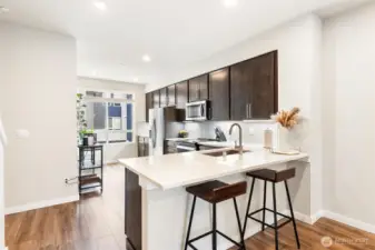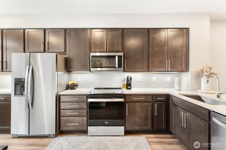 Move-in ready in North Lynnwood! This beautiful, nearly new SFR townhome offers the perfect blend of comfort, style, and convenience. Tucked away for added privacy, this bright and inviting home is filled with natural light from large windows throughout. The open-concept layout seamlessly connects the kitchen, dining, and living spaces to a private deck, creating an ideal setup for entertaining or relaxing at home. The thoughtfully designed kitchen features modern finishes, ample cabinetry, pantry storage, and newer appliances. Each bedroom includes its own private bathroom, with the washer and dryer conveniently located nearby. Enjoy a two-car tandem garage with an EV charger capability, extra storage, and A/C for year-round comfort. Located in the Edmonds School District and just minutes from parks, shopping, dining, and easy freeway access. This low-maintenance home truly has it all. ASK US ABOUT OUR 1% REBATE w/PREFERRED LENDER.