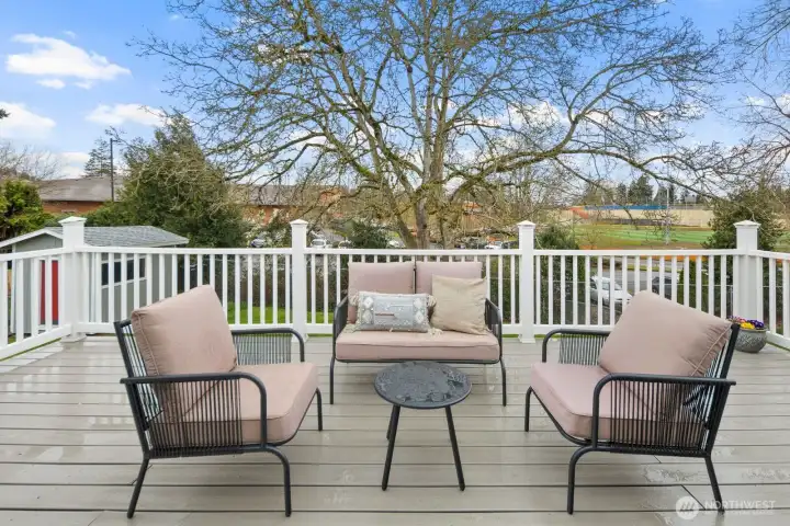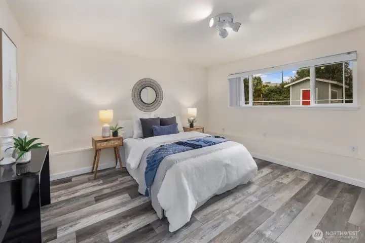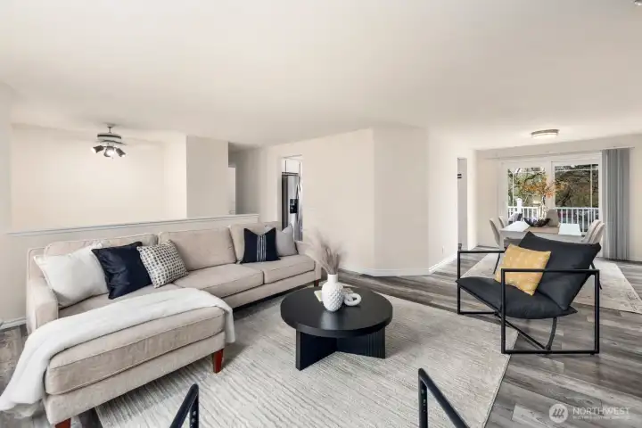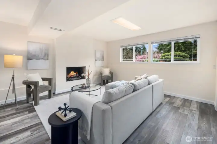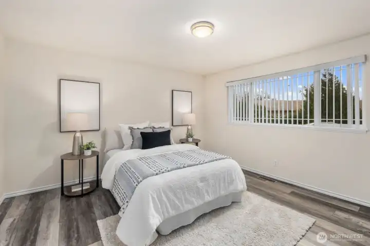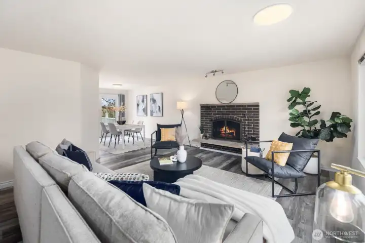 Attractive and functional Fairwood West single-family home located on a quiet residential street. Upper level features 3 bedrooms, including a spacious primary suite with ensuite bath. Recent updates include fresh interior paint, new refrigerator and dishwasher, newer flooring, a 5-year roof, and updated windows. Enjoy abundant natural light through the large living room window and cozy fireplaces on both levels. The lower-level daylight basement offers a huge second living area, an additional bedroom, and a ¾ bath—ideal for a guest suite, potential ADU, or home office. Additional highlights include a convenient full laundry room, attached 2-car garage, and a fully fenced, expansive yard—perfect for outdoor living and entertaining. Conveniently located near shopping, dining, schools, and major commuting routes. A must-see!