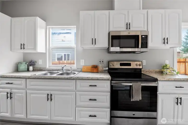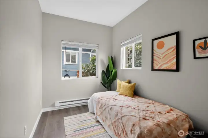 Welcome to this beautifully updated rambler on a charming tree-lined street. A new cedar front porch welcomes you into a bright, open-concept home featuring 3 bedrooms and a custom-designed bathroom. Recent updates include electrical, plumbing, heating, windows, fresh interior and exterior paint, and new luxury vinyl plank flooring throughout. High ceilings and large windows fill the home with natural light, while a recessed electric fireplace adds warmth and style. Stay comfortable year-round with a Mitsubishi mini-split system providing efficient heating and A/C. Enjoy the new deck overlooking the landscaped yard, plus a designated parking space behind the home and additional parking in front. Basement offers extra storage. Conveniently located minutes from downtown Everett, I-5, restaurants, and the Everett Transit Station.