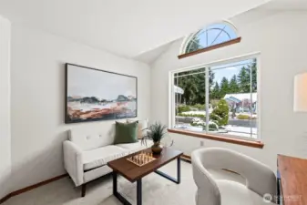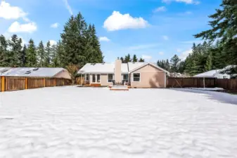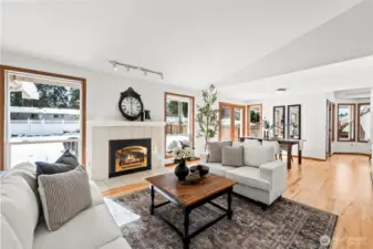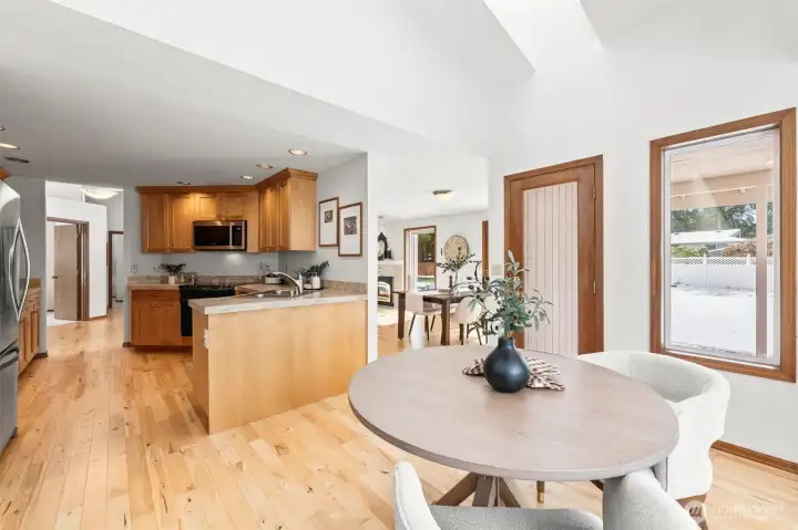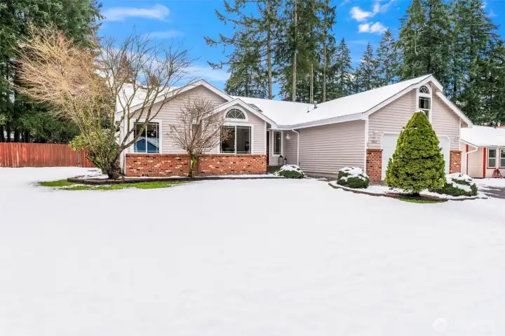 The elusive Gig Harbor find: a true, light-filled RAMBLER on a sprawling, fully fenced, LEVEL lot in Plum Tree. Known for its impeccable pride of ownership and unmatched convenience, Plum Tree offers a lifestyle of ease just moments from the vibrancy of Uptown. The interior is bright and open, where vaulted ceilings and hardwood floors create an immediate sense of scale. The layout is thoughtfully versatile; the dining room could be a sophisticated home office, library, or creative flex space—while the oversized kitchen nook comfortably hosts a table for six. The kitchen is full of lovely maple cabinets and plenty of prep space. The primary suite feels substantial and airy, with its own vaulted architecture, quiet sitting area and surprisingly large walk in closet. Outside, wow! The backyard is a rare suburban luxury. In Gig Harbor where hills and forests are the norm, this awesome, flat expanse provides a private, secure arena for gardening, play, or simply enjoying the open space. Whether you are seeking the simplicity of main-floor living or a perfectly positioned home to grow into, this residence proves that "right-sizing" doesn't have to mean compromising on your elbow room or anything else!