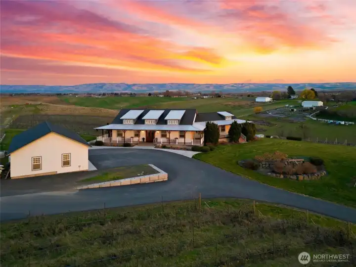 Welcome to this stunning N.W. Contemporary 'Architectural Farm-House Masterpiece', that perfectly marries the warmth of old growth timber w/the beauty of the great outdoors, creating an extraordinary sanctuary. Nestled on a sprawling 36.87 Acres w/Senior Water Rights,' this Estate boasts views of the Blue Mt Range & scenic Walla Walla Valley. As you approach the home, you are greeted by a charming 360-degree wrap-around porch that invites you to explore the 4,145 sq ft home. Step inside, the foyer opens to a grand view across the spacious great-rm & Chef Designed Kitchen, framed by a full bank of southern windows that showcase breathtaking Mt Vista's & overlook an 8+ Acre Vineyard. The reclaimed wood accents have been thoughtfully restored from 1882 & enhance the stairway, barn doors, F.P. mantle, & beams that exude rustic charm. The thoughtfully designed fl plan facilitates effortless entertaining & family living. This remarkable estate features 2 Luxurious Primary Suites, each offering dedicated deck views & spacious walk-in-closets, plus one suite with a handsome fireplace. 3 additional generously sized bd rms provide ample space for everyone. The expansive Acreage is fenced & cross-fenced & features a (2,592' Barn), (2,400' Shop) & (1,344' garage w/work-out gym & work-shop). Truly a once in a lifetime opportunity to own a blend of luxury, nature & functionality. Be sure to request the full Feature List to discover all the exceptional details this property has to offer.