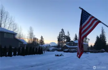 Beautiful 5-bedroom, 2.75-bath home in Bonney Lake with a versatile bedroom on the main level and a 3/4 bathroom! This thoughtfully designed home features an open-concept great room with French sliding glass doors leading to a covered patio complete with a cozy fireplace—perfect for year-round entertaining. Recessed lighting throughout and central A/C provide comfort and modern convenience. The chef’s kitchen boasts a large island, quartz countertops, 42” cabinets, full-height tile backsplash, butler's pantry and a walk-in pantry. All newer stainless appliances including built-in oven and microwave, dishwasher and refrigerator, pendant lighting and hardwood flooring. Upstairs, enjoy a spacious primary suite with vaulted ceilings, wall mounted Flat screen TV, a luxurious bath featuring soaking tub 5-foot shower dual vanities and sinks with two walk-in closets. Three additional bedrooms and a generous bonus room with large wall mounted flatscreen TV to provide plenty of space for everyone. Fully fenced backyard with fire pit offers privacy and space to relax or play. This is a must-see home offering comfort, style, and functionality, all conveniently located close to shopping, minutes from Costco, Fred Meyer, Safeway, Walmart, Movies, restaurants, dining, and a lot more of everyday amenities! Full Mount Rainier view and plenty of parking even for large RV. Located on a dead end on a cul-de-sac.