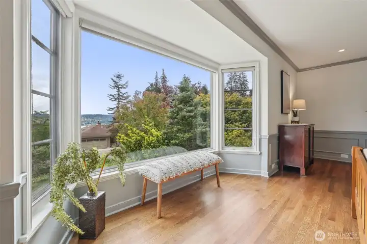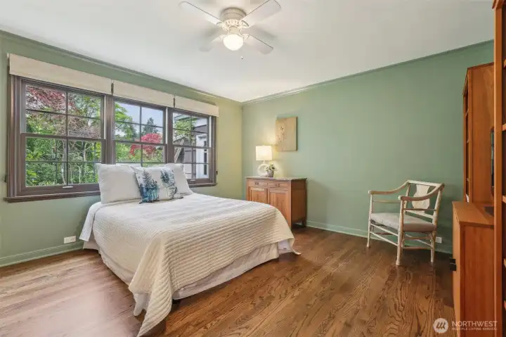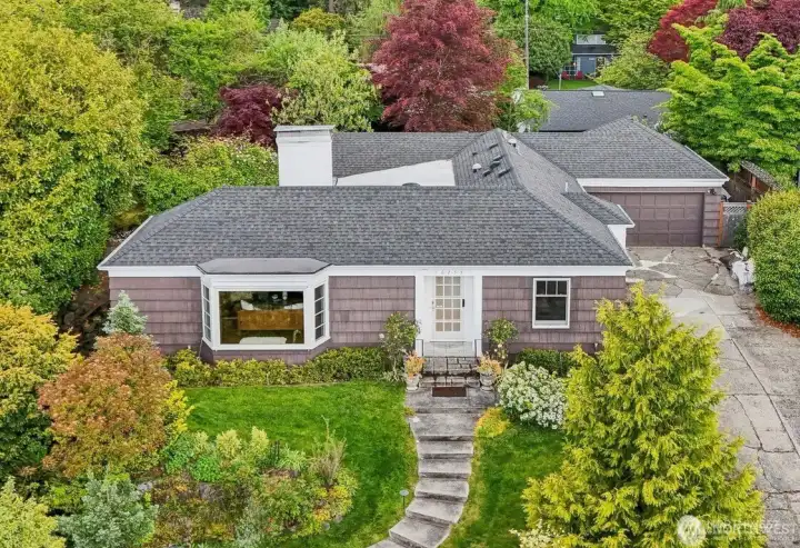 Rare William Bain Traditional in deeded Sheridan Heights with beach club access! Classic original features blend with modern-day renovations. Winding steps lead to dramatic entry & expansive living room with grand fireplace; formal dining room across. Lake and mountain views to the east, garden views to the west, extensive natural light throughout. Kitchen w/custom cabinets, paperstone countertops, stainless appliances, gas cooktop, & cozy nook. Spacious primary bedroom & bath with custom paint and garden views. Guest bedroom & full guest bath on main. Lower level includes huge family room & office space w/separate entry plus 3rd bedroom w/private 3/4 bath. Covered patio leads to unrivaled gardens & serene spaces; immaculately maintained.