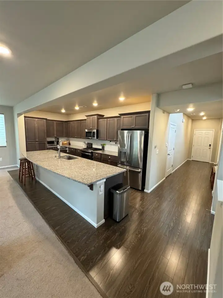 Discover refined living in this exquisite 4BR, 2.5BA home spanning 2,350 SqFt, prominently situated on a desirable corner lot in charming Hawks Prairie. Experience modern convenience with keyless entry and the comfort of A/C. Revel in culinary pleasures with a beautifully appointed kitchen, highlighted by a large granite island and sleek stainless steel appliances. Enjoy seamless entertainment and everyday living in this inviting space. The fully fenced yard provides privacy, while the efficient tankless water heater ensures endless hot water. This home harmonizes function and style, creating a sanctuary you'll love to call home. Close to I-5, two golf course, parks with larges fields and playgrounds, lots of trails, Costco, restaurants, shopping and more!