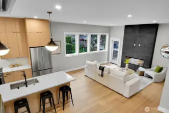 Stunning new construction in the heart of West Seattle, thoughtfully designed to elevate everyday living. This 5-bedroom (or 4 + family room), 3.25-bath home blends refined style with exceptional functionality- ideal for both comfortable living and effortless entertaining. Situated on a light-filled corner lot, the home is wrapped in expansive windows showcasing Puget Sound and Olympic Mountain views from every level. The open-concept main floor features a beautifully appointed kitchen with a large island and seating, high-end appliances, induction range, and abundant cabinetry. The inviting living room offers a cozy fireplace and access to the view deck, while the generous dining space is perfectly suited for entertaining. Upstairs, the primary suite includes a luxurious ensuite bath and walk-in closet. Two additional bedrooms and another full bath complete the upper level.The lower level provides exceptional flexibility with two additional bedrooms (or family room/flex space), a full bath, laundry, and direct access to the rare attached 2-car garage. Enjoy abundant outdoor space with the fenced yard, main level deck, and expansive rooftop deck with panoramic Sound and mountain views.