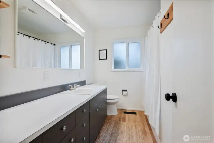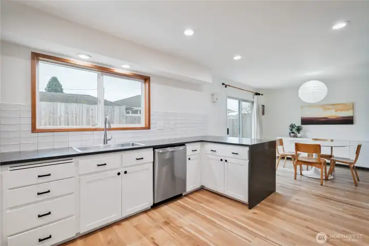 Delightfully stylish, this mid-century modern home is turnkey and ready for new owners. This one level home features three bedrooms, two bathrooms, approximately 1525 ft.² of living space. Tastefully updated throughout featuring newer LVP flooring and fresh paint. Elegant living room w/ cozy fireplace. Spacious kitchen featuring new quartz countertops and tile backsplash. Newer SS kitchen appliances stay! Sliding door in kitchen leads you to a lovely private patio and fully fenced backyard. Heat pump. Two car attached garage. Location is convenient to schools, grocery shopping and Longview’s beautiful Lake Sacajawea Park. Make your appointment today to view this remarkable home!