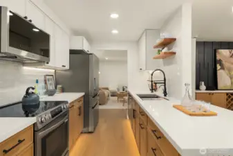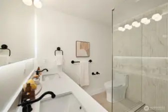 Charming 3 bed, 2.5 bath home in a prime location in Seattle! This thoughtfully updated residence features a custom-designed kitchen with sleek quartz countertops, stylish cabinetry, and ceramic tile finishes that add a refined touch. The well-designed layout offers inviting living spaces filled with natural light, creating a warm and welcoming feel throughout. Upstairs, enjoy a primary master suite with a private bath and a large walk-in closet, along with additional bedrooms that provide flexibility for guests, work, or everyday living. Heated bathroom mirrors and floors. The home blends modern updates with comfortable functionality, making it easy to settle right in. New windows and roof! Ideally situated near parks, shopping, dining, and major commuter routes--this is one you wont want to miss.