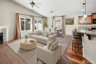 Step into a home where pride of ownership truly shines. This immaculate, move-in ready 3-bedroom, 2-bath stucco home offers 1,770 sq. ft. of thoughtfully designed living space, perfectly situated on a desirable corner lot in a highly sought-after neighborhood. rom the moment you enter, you'll appreciate the open and inviting floor plan, highlighted by vaulted ceilings, stunning flooring, and a seamless flow between living spaces. The spacious dining area connects effortlessly to the kitchen, making it ideal for both everyday living and entertaining. Enjoy outdoor living in the fully vinyl-fenced backyard featuring a private covered patio-perfect for relaxing or hosting atherings. The insulated, sheet-rocked two-car garage adds both comfort and functionality. This home combines style, comfort, and convenience in every detail-truly one you don't want to miss.