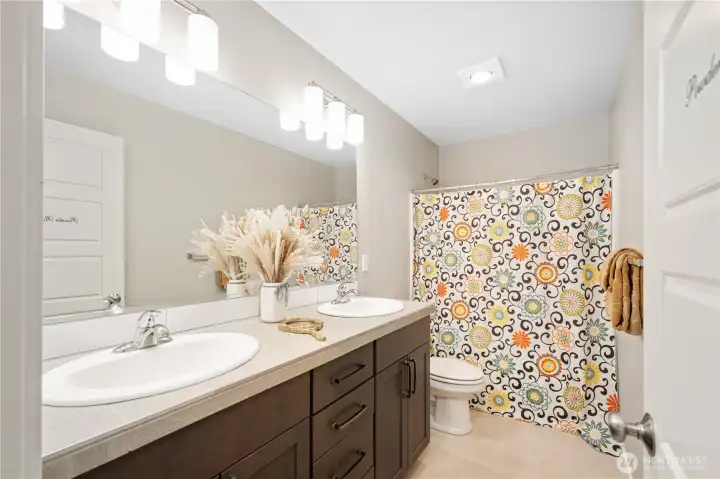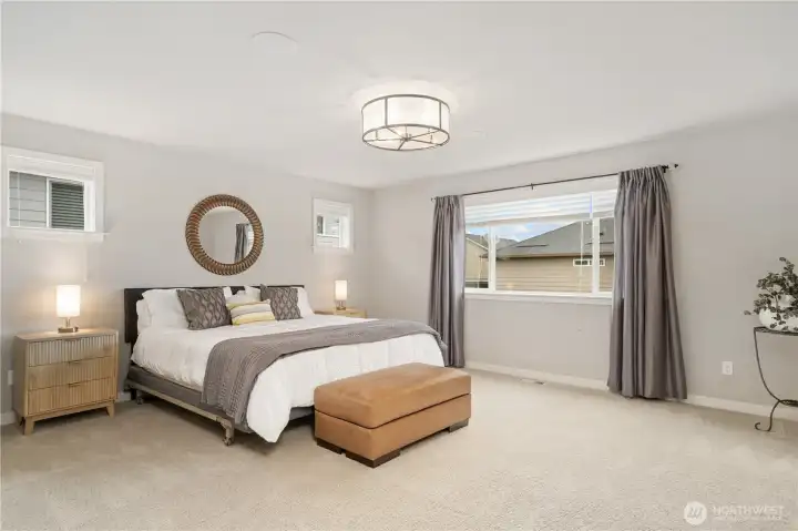 This home is waiting for you with its well thought out floor plan and excellent location. Do you know how much money Solar panels can save you in utility bills? Well you’re about to find out with this home! There’s also a new heat pump and an upgraded 4k projection theatre system to enjoy. There’s a garden sprinkler system, and Ring system. The home features a den/5th bedroom with a full bath on the main floor that compliments the open concept family, dining and kitchen area, a gas fireplace, a walk in pantry and a butler’s pantry complete with cabinets and countertop. It boasts LVP floors, kitchen island with room for stools, stately cabinets for lots of storage, stainless appliances, engineered quartz and tile throughout. The clear story stairwell spills lots of light as it takes you to the upper floor with 4 additional bedrooms (one with a slight view of Martha Lake) and another bath with two sinks! There’s a loft style theatre room and a primary suite that is so spacious! The primary suite includes a 5 pc bath and a rare extra office/sitting room. The large fully fenced backyard brings enjoyment with a gas fire pit area, garden beds & room to throw a ball around. There’s also a covered patio area for dining. Edmonds schools, close to 2 freeways & transit, nearby Vistante community park. Organized 2 car garage, it’s got everything!