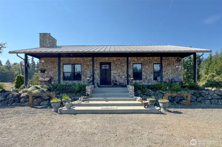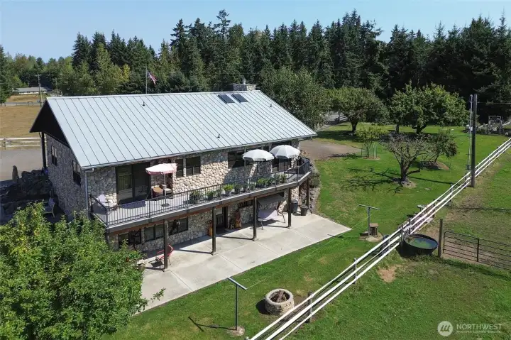 This distinguished country property offers a rare blend of refined living and authentic ranch heritage. Rolling pastures, wooded riding trails, seasonal ponds, and a year-round creek create a landscape that feels both curated and beautifully untamed. Designed for thoughtful land stewardship, the ranch features rotational grazing pastures with quality fencing, stock tanks, livestock shelters, and a creek-fed pond. Additional pastureland offers flexibility for future division, while the property has successfully supported both cattle and poultry. A larger seasonal pond and surrounding acreage attract abundant wildlife, from waterfowl to eagles. Approximately five wooded acres provide a private setting for riding, recreation, and foraging, rich with native plants and natural beauty. A historic 1940s barn, versatile shop, and converted garage spaces add function and charm, while numerous improvements—including upgraded access, outdoor living areas, garden space, and infrastructure—enhance everyday usability. Inside, the home features stone tile flooring, custom wood accents, and a beautifully appointed kitchen with Spanish tile and a KitchenAid gas range. The expanded primary suite includes a walk-in closet and ensuite bath. Originally a 3-bedroom, now a spacious 2-bedroom, the home also offers a lower level with private entrance—ideal for guests, multi-generational living, or flexible use.