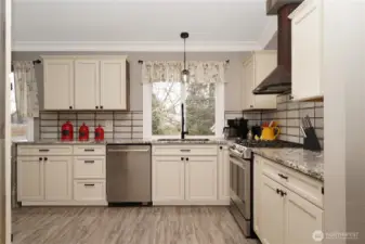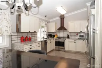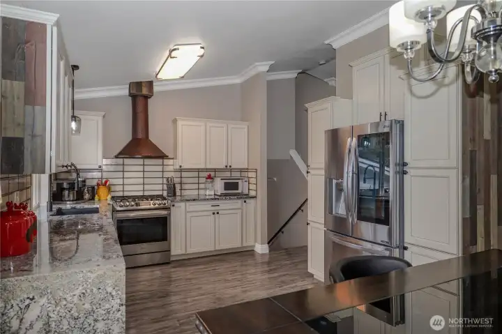 Breathtaking Mount Rainier views out the living room bay windows of this beautiful tri-level home located on over 1/2 acre in Bonney Lake/Buckley area conveniently located right off highway 410 for a quick commute to 167 or the mountain*this charming one street neighborhood has no HOA*bring your chickens*Many upgrades include crown molding extending throughout the vaulted ceilings*NEW Designer lighting*Bright beautiful Chefs kitchen w/garden window*Stylish updated kitchen with European cabinetry & quartz countertops, accented by a striking waterfall edge Quartz detail flowing into the elegant dining room*Sleek tile backsplash*Custom range hood wrapped in warm copper finishes*Stainless Steel appliances*Cozy Pellet stove or revile the gas fireplace in the living room*Beautiful Vinyl plank floors*King size primary bedroom with private bath with skylight & dbl closets*main level family room could be 4th bedroom has slider out to large covered patio great for BBQ's*wired for hot tub*Circular driveway has ample parking & room for massive RV & all the toys w/additional detached carport in back*Room to build your DREAM SHOP in the level PRIVATE fenced backyard*Beautifully landscaped with mature camellia & white Magnolia already blooming! Room for large garden*loads of dry storage through the 2 car garage under the home*Generator ready*