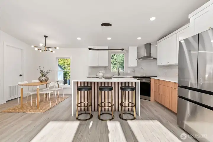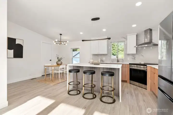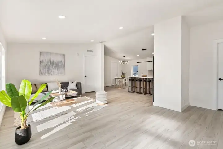 Welcome to this stunning 3-bedroom, 2-bath home in a prime Puyallup location! Tucked just off 176th, you’ll enjoy quick access to Military bases, shopping, local airport, and Hwy 512 for an easy commute. Step inside to find vaulted ceilings that create an open, airy feel, complemented by fresh paint inside and out. The modern kitchen boasts quartz countertops, stainless steel appliances, and a custom backsplash, making it the heart of the home. Durable LVP flooring flows throughout, adding both style and practicality. Outside, the fully fenced yard offers privacy and space for gatherings, pets, or play. With a convenient 1-car garage and truly move-in ready condition, this home blends comfort, charm, and everyday convenience. Must See!