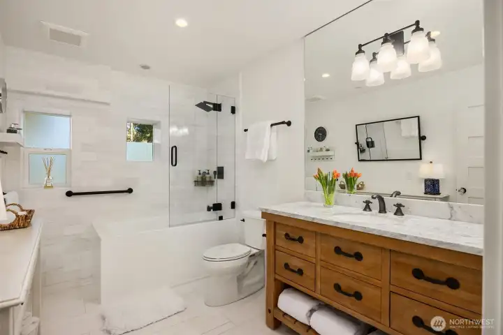 Every so often, a truly special home comes along…one that makes you pause. Set on 1.7 acres of beautifully landscaped grounds, this fully remodeled 1940s cottage blends timeless charm with modern comfort. Enjoy exceptional privacy, peaceful surroundings, and ideal sun for gardening, all just minutes from Kingston and near historic Port Gamble and Heritage Park for scenic walks. Inside, you’ll find a stunning chef’s kitchen, shiplap accents, and light-filled living spaces. The upstairs primary suite lives like a private retreat, complete with a sitting room, fireplace, and dressing area. A main-level bedroom, full bath, and dedicated office offer flexibility for guests or work-from-home living. A breezeway connects to a two-car garage with EV charging, plus another building used as a shop with finished upper-level flex space, perfect for a studio or gym. Shared ownership of a private beach offers clams, oysters, and seasonal salmon runs, while the outdoor dining area with heaters and fire pit creates the perfect setting to relax and gather. This is Pacific Northwest living at its best.
