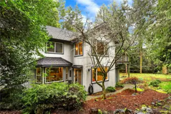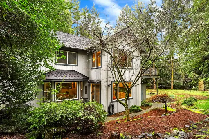 Introducing 211 Baycliff, a spacious home set on 1 acre in the desirable gated Kala Point community. Designed for both comfort & versatility, this property offers space to gather, relax, and create lasting memories. Set well back from the road the home welcomes you into a peaceful, private setting surrounded by mature evergreens, where the beautifully wooded landscape provides a serene, nature filled backdrop that captures the essence of Pacific Northwest living. A welcoming covered front porch creates a warm first impression and offers the perfect space to relax and enjoy the tranquil surroundings. Inside, the recently upgraded kitchen features newer flooring-cabinetry-granite countertops-updated appliances-and a built in wine cooler, ideal for everyday living and entertaining. Custom shutter blinds throughout add a touch of elegance while enhancing light and privacy. The expansive 3 car garage offers generous space for vehicles, storage, or a workshop. Above, a versatile bonus room provides endless possibilities including a theatre room, studio, hobby space, or guest retreat. The primary suite offers a spacious bath w/soaking tub & a private deck creating a peaceful place to unwind and take in the surrounding natural beauty. With its solid features and flexible layout this home presents a wonderful opportunity to add your own personal touches. As part of Kala Point residents enjoy exceptional amenities including a pool-clubhouse-beach access-pickleball-tennis courts & more.
