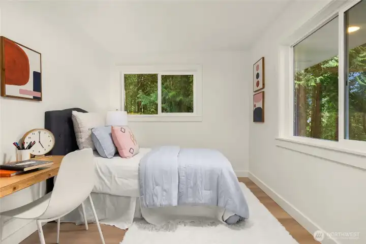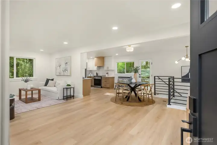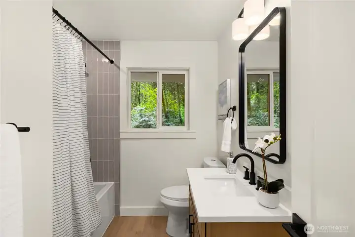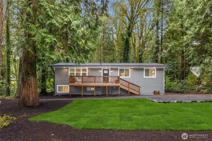If you know Frog Rock, you’ll instantly recognize this coveted location - this home sits right around the corner. Set on 1.27 acres, this beautifully remodeled property offers the perfect blend of modern updates and Pacific Northwest charm. Completely and thoughtfully renovated throughout, this home features all-new systems and finishes - from a new roof to beautifully updated kitchen and bathrooms. Truly turnkey and move-in ready. Designed for both entertaining and everyday living, a spacious front deck welcomes gatherings, while a more private backyard deck provides a peaceful retreat surrounded by nature. The main level includes three bedrooms and 2.5 baths, while the lower level offers flexible living space ideal for a media room, playroom, or home office, with French doors opening to the yard. Ideally located near Xalilc Elementary School, surrounded by scenic walking areas, with Hidden Cove Park just moments away - perfect for swimming, kayaking, or picnicking - this property captures the essence of Bainbridge Island living.