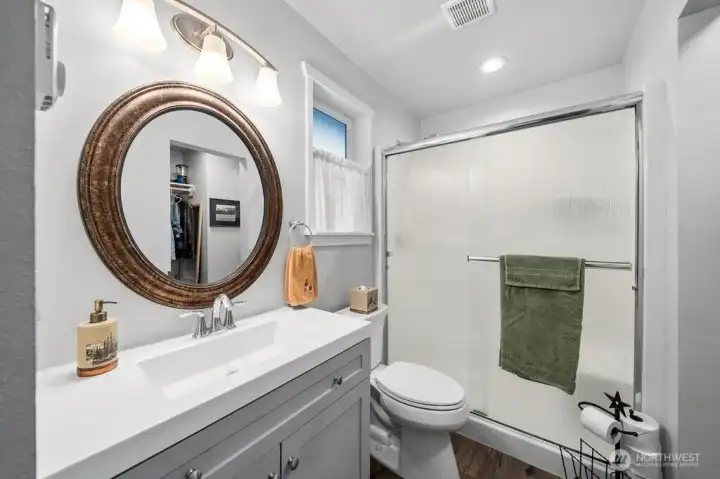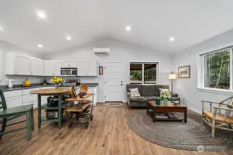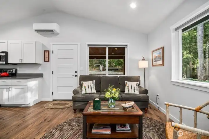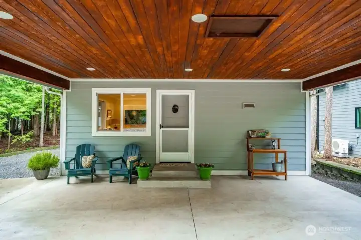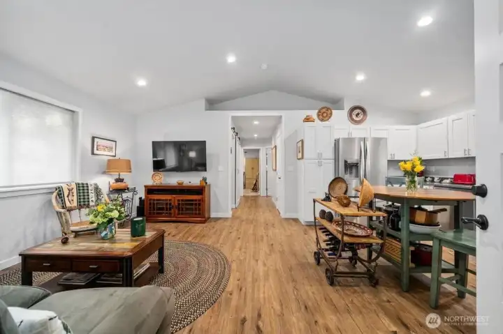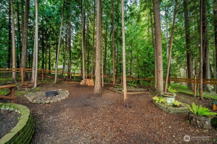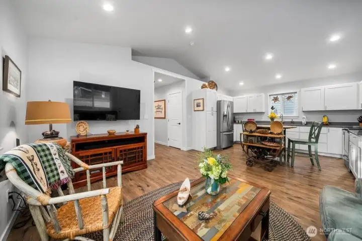 The Perfect Canvas to a Retreat Lifestyle. Newly Built in 2020, No Details were spared in this impeccably styled modern retreat house, tucked away in a peaceful Northwest setting. This home is just a stone's throw to the tranquil waters of Clear Lake, the community pool & miles of nature walking trails ~ the Clearwood gated community is just minutes from downtown Yelm. Boating/kayak launches, hiking trails and forest preserves around! This sophisticated property is designed for calmness, appreciation of nature & ease of living. This luxurious single story estate has a fluid layout throughout for maximum accessibility, indoor & outdoor flow, comfort and serenity. Upon entering the private half moon gravel driveway, you will be greeted by a sense of peace and relaxation. Enter the house & enjoy vaulted cathedral ceilings drenched with natural light, and LVP wide planked flooring that create a warm, inviting ambiance, perfect for entertaining all year around. The open floor plan co-mingles the outfitted kitchen with quartz countertops, a floating island dining area, bright and airy great room. Summertime enjoy the portico that fits an oversized table for large parties & entertaining. Wintertime doubles as a carport. Two bedrooms & baths offer character, a departure from traditional cookie-cutter homes. The primary bedroom, an en-suite bathroom with walk-in shower, large walk-in closet has a private deck and entrance. Naturally, the landscaped backyard is fully~fenced & divine.