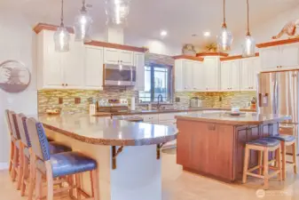 Custom country home offering exceptional privacy with full fencing and gated entry. Features include heated concrete floors, concrete countertops, and a custom primary suite with a tiled shower, soaking tub, and walk-in closet. A connected flex room off the primary bedroom works perfectly as an office or additional bedroom. The separate dining area opens to a covered concrete patio, and the large gravel parking area accommodates multiple vehicles, RVs, and boats. A standout amenity is the 2,880 sq. ft. two-story shop with heated floors, fully finished and painted drywall, steel workbenches, and a main-floor kitchen and bathroom. The upper level includes a great room, full kitchen, and mini-split for efficient heating and cooling. A buildable lot, metal storage building, and additional concrete parking are included. Located just minutes from Cascade park, town, and the boat launch.