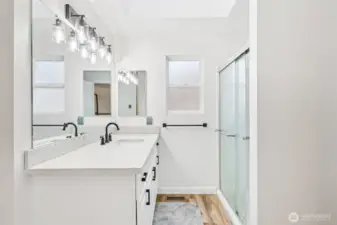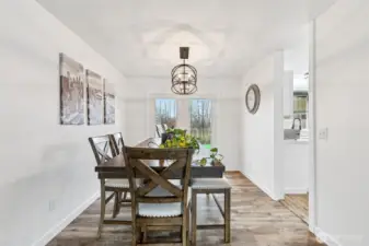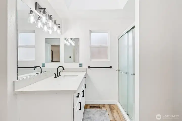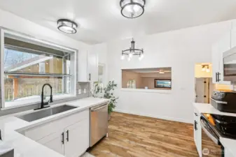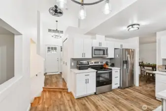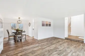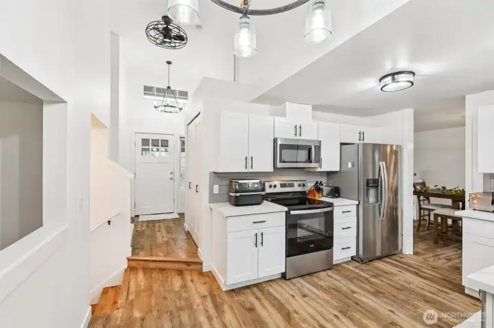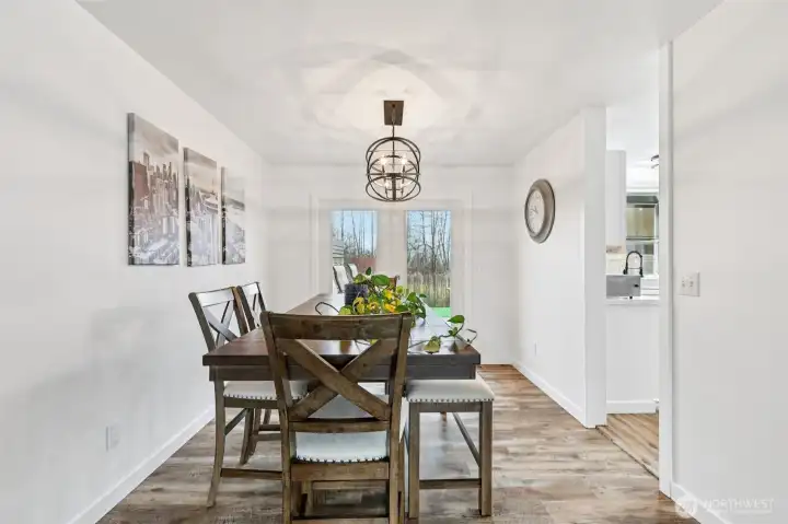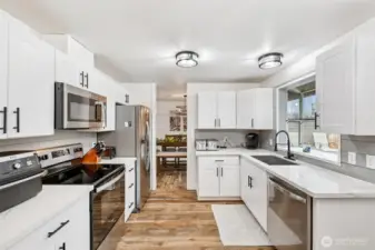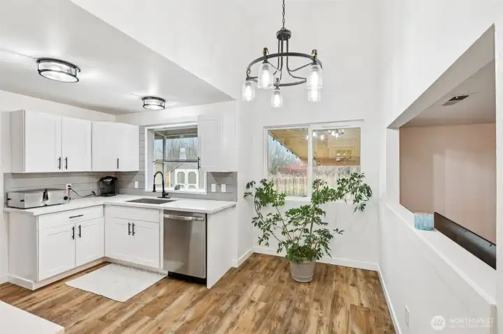 Beautiful turnkey home with thoughtful updates throughout! Vaulted ceilings, hardwood-style laminate flooring, large bay windows, and a cozy fireplace create a bright, inviting atmosphere. The circular floor plan features two spacious living areas and a fully updated kitchen with stylish cabinetry, quartz countertops, and new appliances. The lower-level living space opens to a covered patio—perfect for entertaining—with room for a BBQ, hot tub, and is pre-wired for TV. Enjoy territorial and mountain views. A/C & tankless H20. Located in a quiet, established neighborhood with no HOA, this home offers a prime Enumclaw location just minutes from downtown shops, restaurants, parks, and medical facilities.