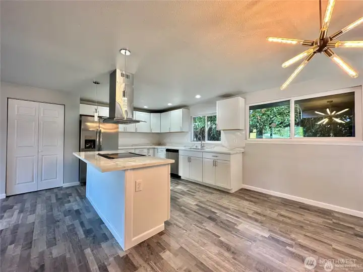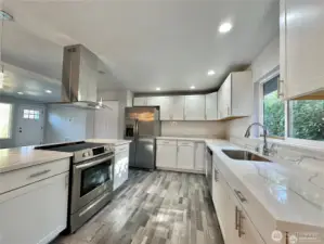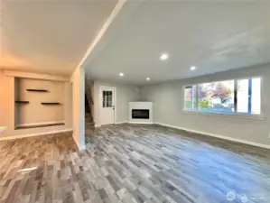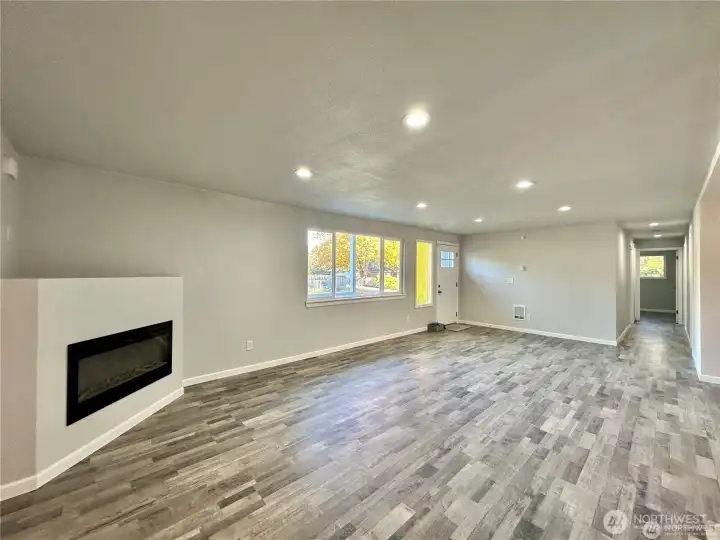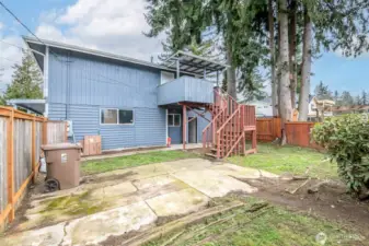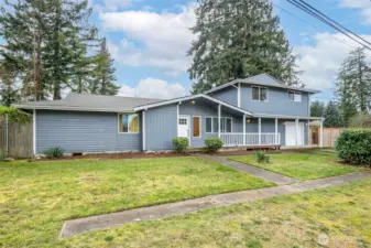 Fully remodeled home with incredible flexibility and true multi-generational potential! The main level lives like a spacious single-story, featuring a huge open-concept layout with a seamless flow between the living room, dining area, and kitchen with eating space. Enjoy quartz countertops, shaker cabinets, stainless steel appliances (all included), new fixtures, and a cozy electric fireplace. The main floor offers 3 bedrooms and 2 bathrooms, including a primary suite with walk-in closet, ensuite bath, and its own private covered deck. Additional highlights include a 1.5-car garage and a covered back patio—perfect for year-round enjoyment. Upstairs has a separate exterior entrance and functions as a fully independent living space with 2 bedrooms and 2 bathrooms, including its own primary suite with ensuite bath. Complete with a full kitchen, living area, and private backyard, this setup is ideal for extended living, rental income, or guest quarters. Perfect home for an investor house hack. Both yards are fully fenced, and the property offers tons of parking for vehicles or RVs. Conveniently located near shopping, schools, parks, JBLM, I-5, and Hwy 512.
