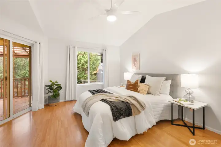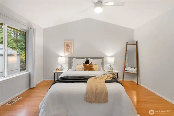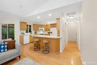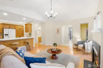 Nestled in the heart of Barkley in a peaceful, highly sought-after neighborhood, this beautifully maintained rambler offers effortless single-level living with unbeatable access to Barkley Village and Bellingham’s award-winning trail system. Thoughtfully designed with an open, light-filled floor plan, the home features vaulted ceilings and a cozy gas fireplace that creates a warm, inviting atmosphere. The spacious kitchen is ideal for both everyday living and entertaining, boasting wrap-around counters, abundant storage, and an extended eating bar for additional seating. The home includes two generously sized bedrooms, including a private primary suite with a ¾ en-suite bath. Step outside to enjoy the fully fenced backyard with new fencing and a covered patio that captures the afternoon sun—perfect for relaxing or hosting. An attached 2-car garage provides ample storage. Located within walking distance to shopping, dining, grocery stores, the theater, schools, and trails, this home offers the perfect balance of tranquility and convenience.