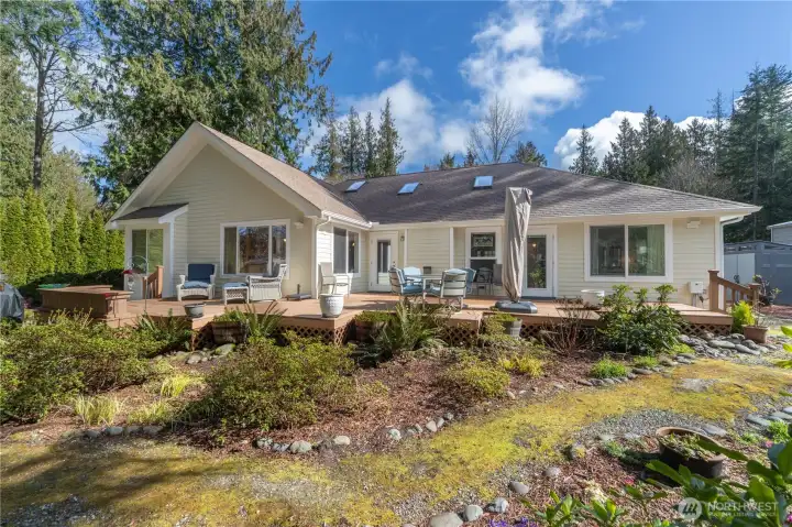 Fall asleep to the sound of the river every night. This immaculate and meticulously maintained home is nestled on the Dungeness River surrounded by trails, wildlife, golf, clubhouse with pool only minutes from downtown Sequim. Enter from quaint covered porch into a spacious, well thought out design. Great room style home with vaulted ceilings, open kitchen w/ solid wood cabinets with pull out drawers, SS appliance pkg including gas cooktop, stone counters & walk in pantry. Gas FP in living room, skylights for ample natural light. Large primary bedroom with full ensuite is a must see. No detail skipped, from the big laundry room to the den/office, dormer windows, all of it makes sense and feels right. Outside is ample garden space with mature landscape and deck for outdoor living & fully fenced back yard. Need more space? Adjacent lot to the south is available for purchase as well!