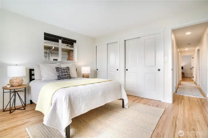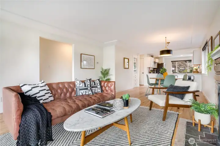 Modern updates meet mid-century charm in one of North Tacoma’s most coveted pockets. This beautifully dialed-in 1960 brick home blends timeless character with thoughtful upgrades throughout. Refinished original hardwoods flow effortlessly into living space & three main-level bedrooms. The updated kitchen features soft-close shaker cabinetry, quartz countertops, & new stainless-steel appliances. The spa-inspired bathroom showcases a large double vanity, creating a space that balances style & comfort. Downstairs offers exceptional flexibility with a spacious second living area & kitchenette ideal for rental income, multi-generational living, or the ultimate hangout space. A massive fourth bedroom, ¾ bath, large laundry room & expanded one-car garage complete this versatile lower level. Step outside to a peaceful backyard retreat with a concrete patio, blooming cherry blossom tree & a mini apple tree. Only half a block from Jefferson Park & Mason Trail. An easy stroll to neighborhood favorites Beer Star, Valhalla Coffee & Tacoma Pie. New AC installed in 2023 & sewer line replaced in 2026.