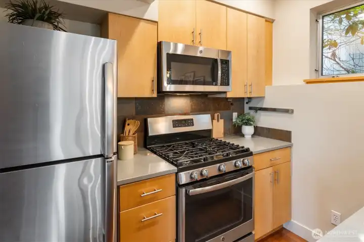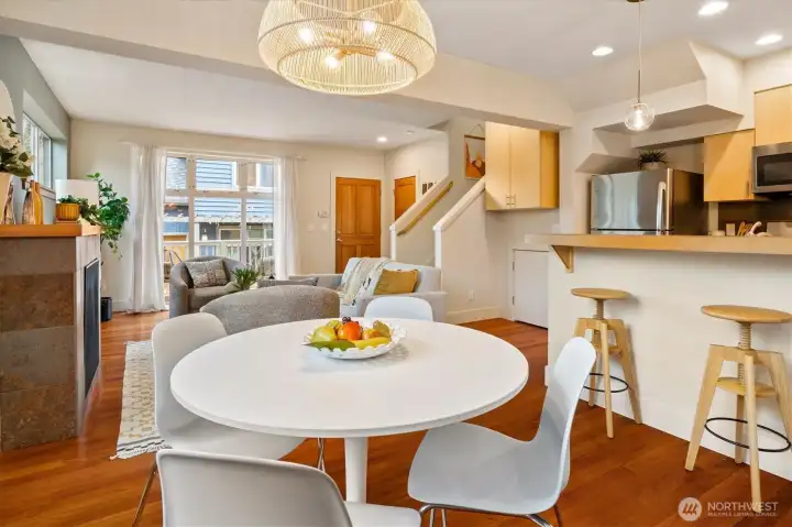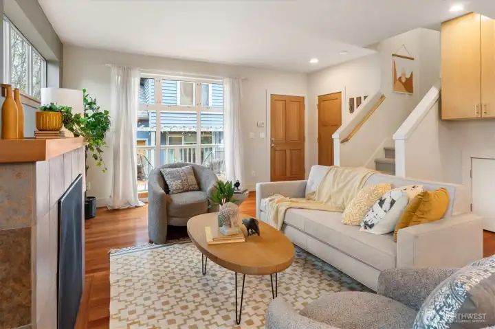 Tucked into a charming, village-like setting of the Forest Street townhomes, this bright and colorful detached single-family home is situated on a corner lot, and filled with natural light, with a welcoming energy throughout. Designed with 2 bedrooms, 2.5 baths, and a versatile bonus room—ideal for a home office, media space, playroom, or fitness area—this home adapts easily to your lifestyle. The primary suite fills the entire third floor and features vaulted ceilings, a walk-in closet, and a private en suite bath. Warm cherry hardwood floors and a cozy gas fireplace anchor the main living space. Step outside to a generously sized front porch—perfect for entertaining, grilling, or simply enjoying the neighborhood atmosphere. Enjoy unbeatable convenience with the Mount Baker light rail station just a short stroll away, making commuting into the city seamless. Daily essentials are within easy reach, including a grocery store around the corner, restaurants, and local amenities. Additional highlights include covered tandem parking for two cars, and recently replaced roof, hot water heater, washer/dryer, and dishwasher. So much to love about this home!