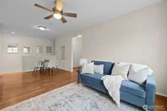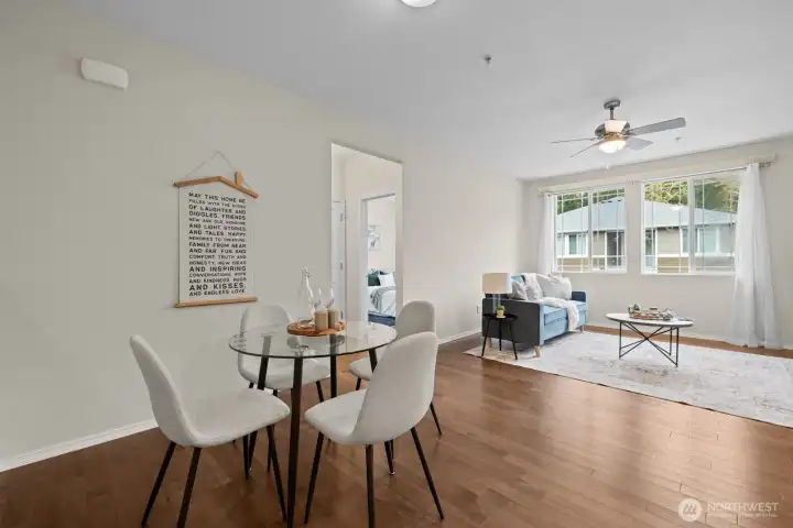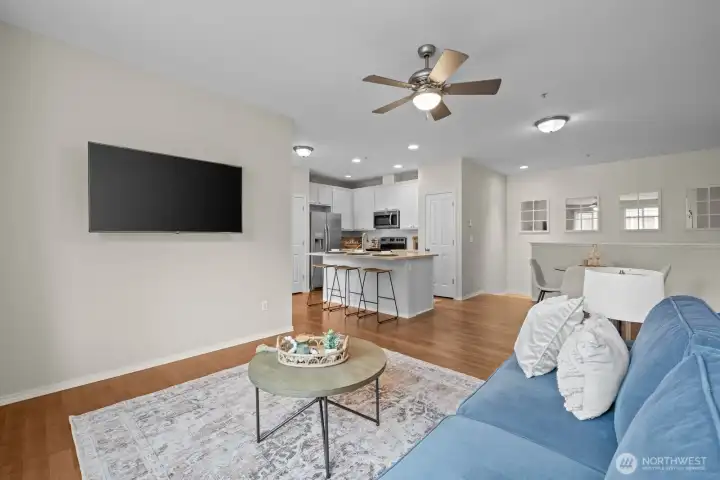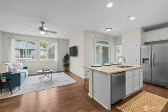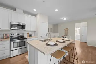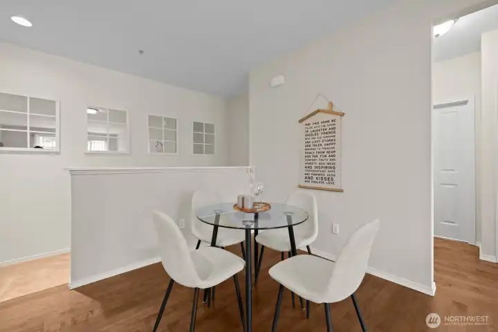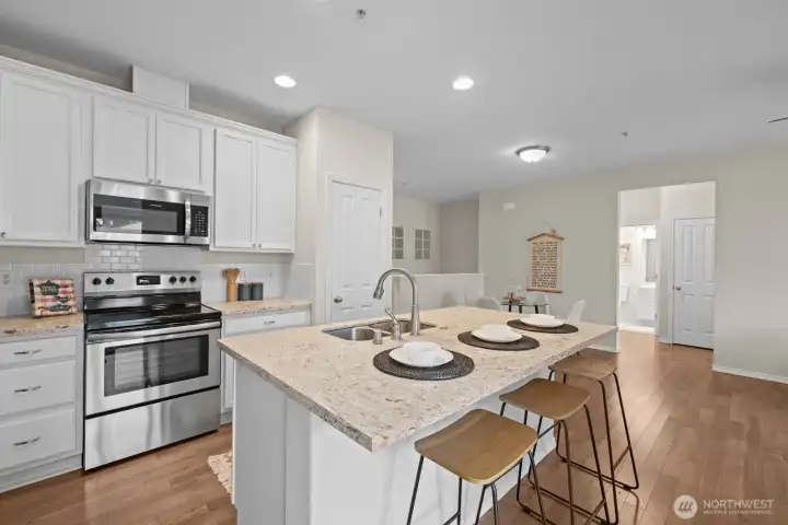 Updated DuPont townhouse in excellent condition, offering easy living and a layout that truly works. This desirable corner unit lives large with no neighbors above or below, and beautiful windows that flood the home with natural light. Wide staircase leads to warm hardwood floors and an open-concept living room, ideal for everyday living and effortless entertaining. The kitchen features an island with bar seating, stone countertops, updated cabinetry, ample prep space, and seamless flow into the living area. Step out to the covered balcony, perfect for year-round BBQs or relaxing outdoors. Enjoy nearby parks, golf courses, trails, and the welcoming DuPont community, all just minutes to JBLM, shopping, and dining!
