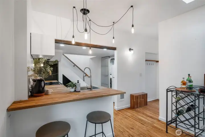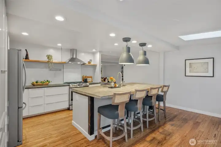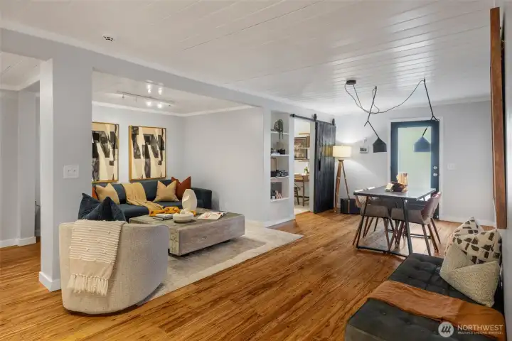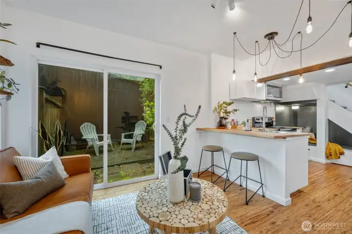 Welcome to this beautifully updated one-level home situated on a spacious corner lot in Des Moines. Offering partial water views and a serene, coastal-inspired ambiance, this property blends comfort, style, and versatility. Step inside to an open-concept layout designed for effortless living and entertaining. The kitchen flows seamlessly into the main living and dining areas, creating an inviting space with plenty of room to gather. Thoughtfully selected finishes throughout the home evoke the charm of a stylish European retreat, adding warmth and character at every turn. The fully remodeled primary suite is a true highlight, featuring a luxurious bathroom and a well-designed closet that offers both function and style. An office nook just off the dining area provides the perfect work-from-home setup without sacrificing flow or space. Outside, the backyard is ideal for entertaining, gardening, or simply relaxing. A detached structure offers endless possibilities—whether you envision a workshop, fitness studio, or creative space. The property also includes a one-bedroom, one-bath living space with a remodeled bathroom that has been successfully used as a short-term rental and income-producing unit, generating over $30,000 on Airbnb last year. Located just minutes from the Des Moines Marina, Saltwater State Park, and Sea-Tac Airport, with easy access to Hwy 509, I-5, and Hwy 99, this home combines convenience with a peaceful, coastal lifestyle.