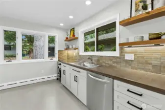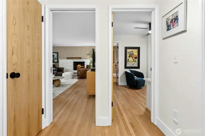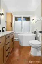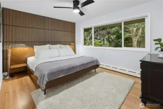 Architecturally pure. Aesthetically reborn. Here, level living calls from craved Edmonds location: Steps from beloved Yost Park and a simple e-ride to the Bowl's best eateries, shops, galleries, ferry and parks. Step inside the restored, light-filled interior, cocooned by lush gardens, and delight in the details: Expanses of pristine hardwoods playing nice with geometric tile, wood-slatted walls, curated lighting & commanding wood-burning fireplace; Stunning bath reimagination with quartz-topped double vanity, spa-worthy soaking tub, sublime fixtures and sleek walk-in shower; A chef's center boasting shaker fronts & pulls, stunning stone splash, can-do marmoleum, floating shelves & clever accent lighting; And, exquisite suites dressed in soft designer hues with new, natural-finished solid oak doors & matte black hardware. Seriously function forward, too, with new sewer line & clean-out, electric panel, water heater, fiber & video cabling, in-ceiling ductless mini splits, retro foam insulated exterior walls and so much more. Storage at every turn (do not miss the oversized garage & cottage shed), uber-efficient laundry center and plenty of period details left in tact to impress the enthusiast. The gardens are a masterclass in color, texture and purpose...this is truly a property to be cherished. Welcome home.