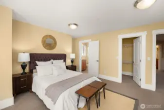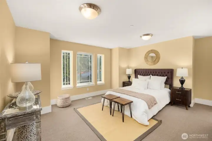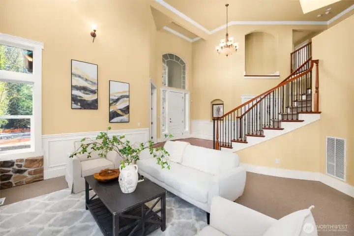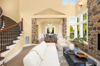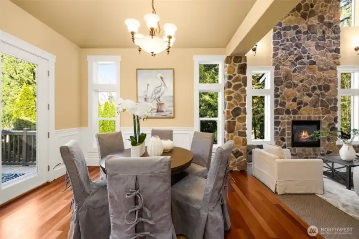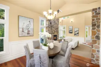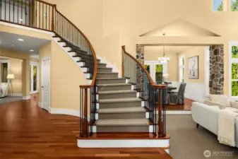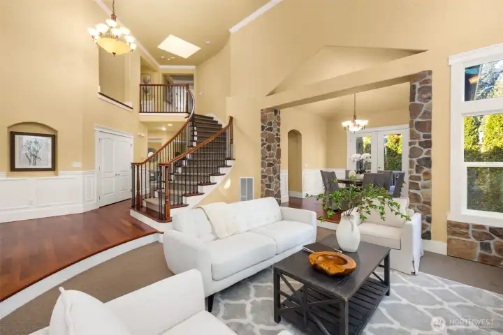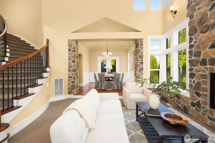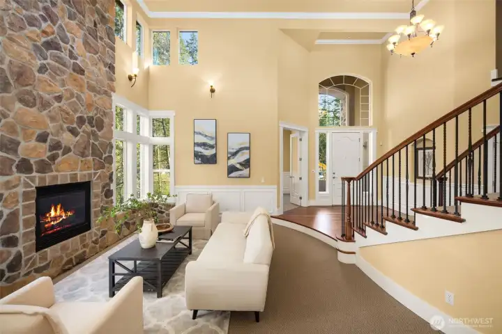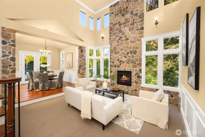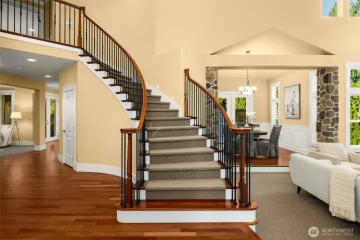 Nestled in a private setting just minutes from downtown Bothell, this high-quality custom home showcases exceptional craftsmanship and timeless design. A grand entry welcomes you with an elegant curved staircase featuring open metal balusters, setting the tone for the refined interiors throughout. The formal living room impresses with soaring ceilings, a gas fireplace, and walls of windows that fill the space with natural light. The chef’s kitchen is beautifully appointed with rich cherry cabinetry, slab granite countertops, and a large island with bar seating. The spacious family room offers a second gas fireplace. Step outside to enjoy the covered patio and deck off the dining room. Upstairs, the luxurious primary suite features a spa-inspired 5-piece bath, a generous walk-in closet, and a sitting area. A guest en-suite and a 3rd bedroom each with walk-in closet. A versatile loft and full hallway bath complete the upper level. Additional highlights include a main-floor office, gleaming hardwood floors on the main, art niches, skylights, wainscoting, built-in cabinetry, stunning stonework, and extensive millwork throughout. Spacious 3-car garage and pre-plumbed for A/C. Sought-after Northshore School District. Conveniently located just steps from Bothell High School and moments from the shops, dining, and amenities of downtown Bothell, with easy access to the Eastside and downtown Seattle.
