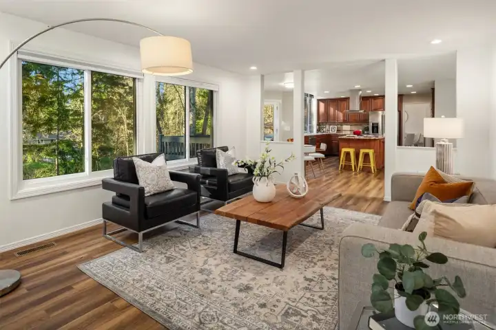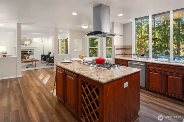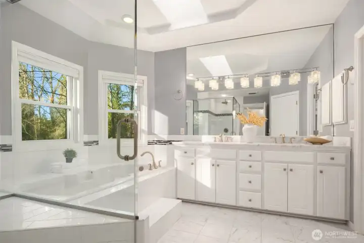 Experience refined living in this exceptional 5-bedroom, 3.5-bath residence in Glenwood, one of the area’s most coveted neighborhoods. Beautifully landscaped and gracefully positioned against a tranquil greenbelt, this home offers rare privacy and a picturesque natural backdrop. A grand two-story foyer crowned with a skylight and complemented by an elegant spiral staircase sets a sophisticated tone. The thoughtfully curated floor plan includes a main-level executive office and expansive living spaces designed for elevated entertaining. The gourmet kitchen showcases a gas cooktop, professional-grade range hood, and sun-drenched interiors enhanced by a sunroof. Upstairs, four generously proportioned bedrooms include a luxurious primary suite overlooking the greenbelt, featuring a spa-inspired bath with skylight and built-in soaking tub. The lower level offers a substantial bonus room with wet bar or potential second kitchen, a private guest suite with shower bath, and separate backyard access—ideal for multi-generational living. 3-car garage is a rare find too. Served by top-rated Issaquah schools and offering seamless access to I-90, Bellevue, Seattle, fine dining, shopping, and more.